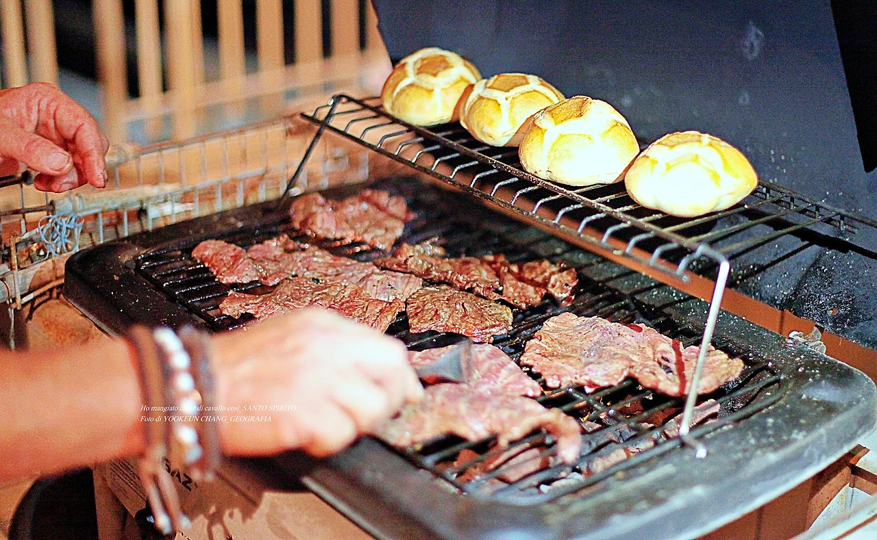 얇게 저민 말고기에 소금과 후추만 뿌리고 바비큐 통 위에서 구워낸 것이다. 사진과 영상을 통해 확인되지만 말고기에는 대리석 무늬를 뜻하는 이른바 마블링(marbling)이 보이지 않는다. 기름기가 보이지 않는 것이다. 그런데 맛을 보면 고소하고 육즙이 촉촉하게 묻어나는 것이다. 교황청까지 나서서 말렸지만 말을 듣지 않는 백성들에게는 그만한 이유가 있었던 것이다.