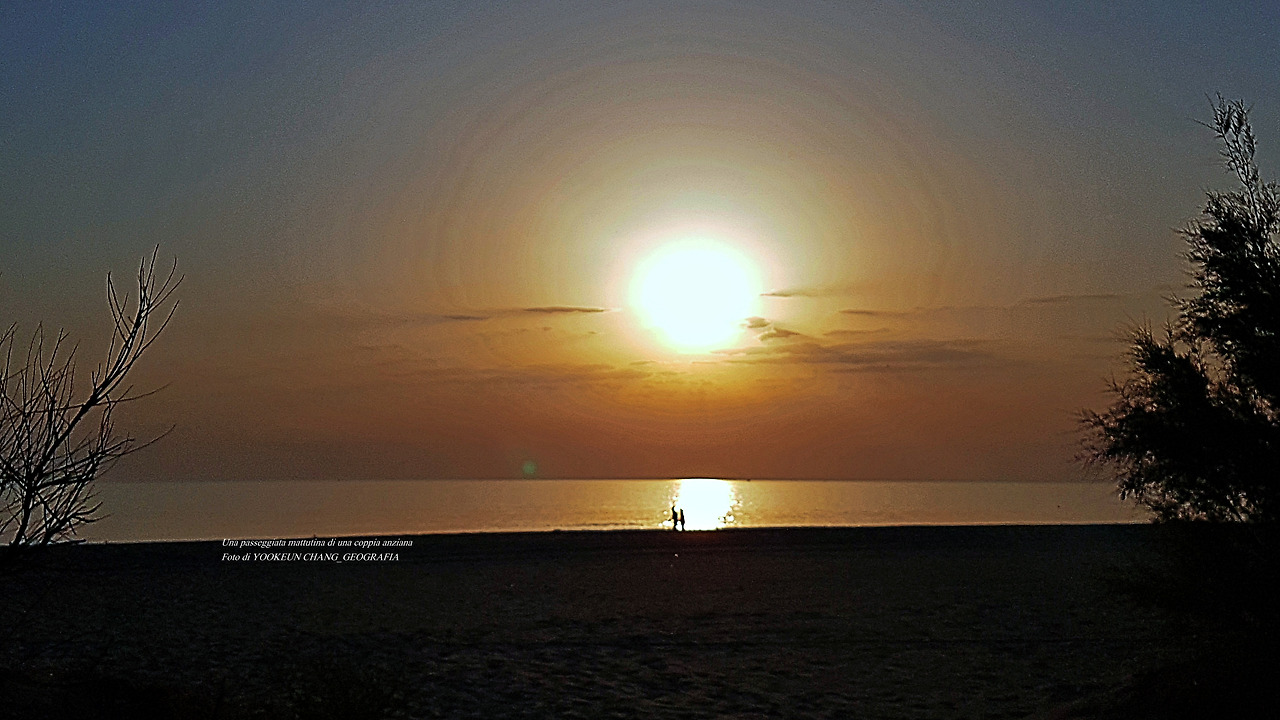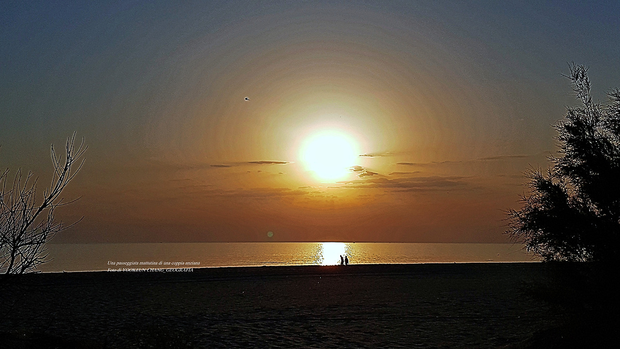 Una passeggiata mattutina di una coppia anziana_L'ALBA SULL'ADRIATICO