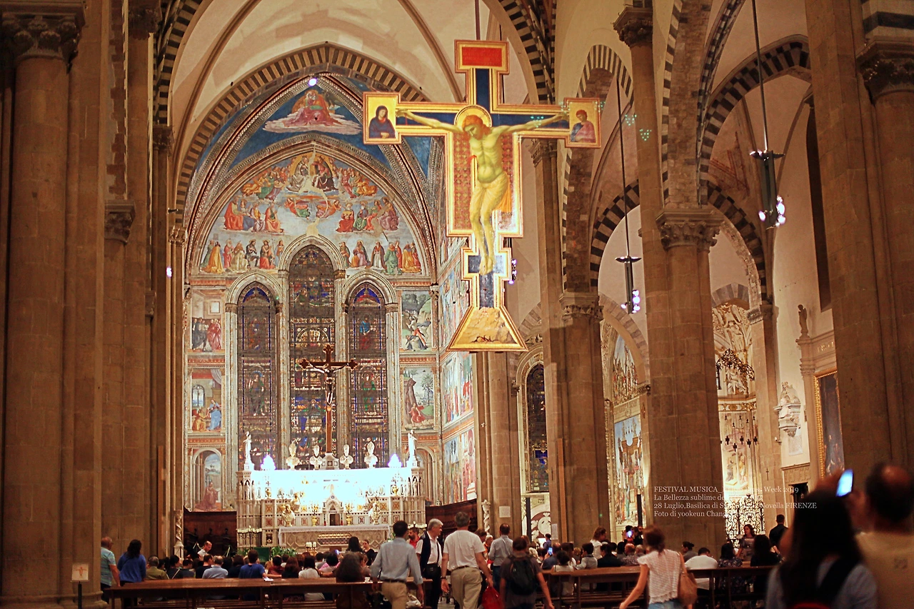 따라서 이날 브라스 밴드의 공연이 이어진 피렌체의 산타 마리아 노벨라 성당 내부의 장식은 무엇 하나 나무랄 데가 없는 인류 최초 최고의 무대라고 감히 말할 수 있다. 오래전 이 건축물을 만들 당시만 해도 지금 같은 공연을 염두에 둔 것은 아닐 텐데, 무대는 마치 오늘날 현대인의 취향에 맞게 설계해 둔 듯, 특히 관악협주가 조용히 쏘아 올리듯 매우 부드럽게 내뱉는 연주는, 최신 휴대폰의 이어폰을 귀에 꽂고 몸서리치듯 감상하는 음악이나 다름없었다. 나의 혼을 쏙 빼놓은 감동적인 현장으로 가 본다.
