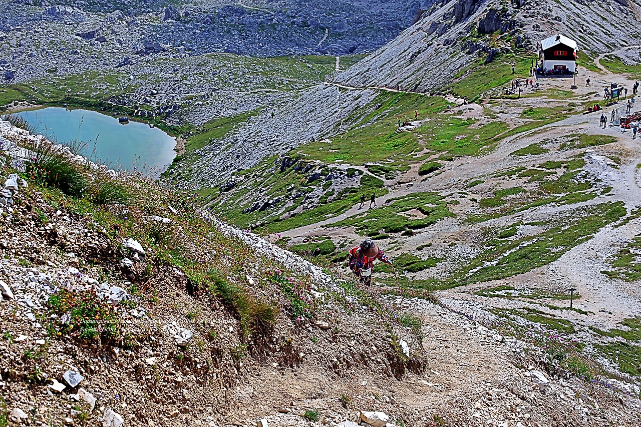 사진첩 속에는 신의 그림자가 빼곡하다. 내 영혼이 은총을 입지 않았다면 결코 일어날 수 없는 기적 같은 일이 매일 내 곁으로 동행하는 것이다. 나는 어느새 세 봉우리를 바라보고 있던 영혼들이 머문 자리 벙커에 도착했다. 그곳에는 한 쌍의 연인들이 세 봉우리를 향해 기념촬영을 하고 있었다. 기록, 돌로미티(Dolomiti) 19박 20일은 계속 이어진다.