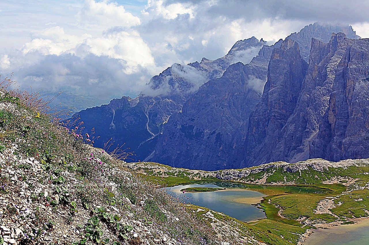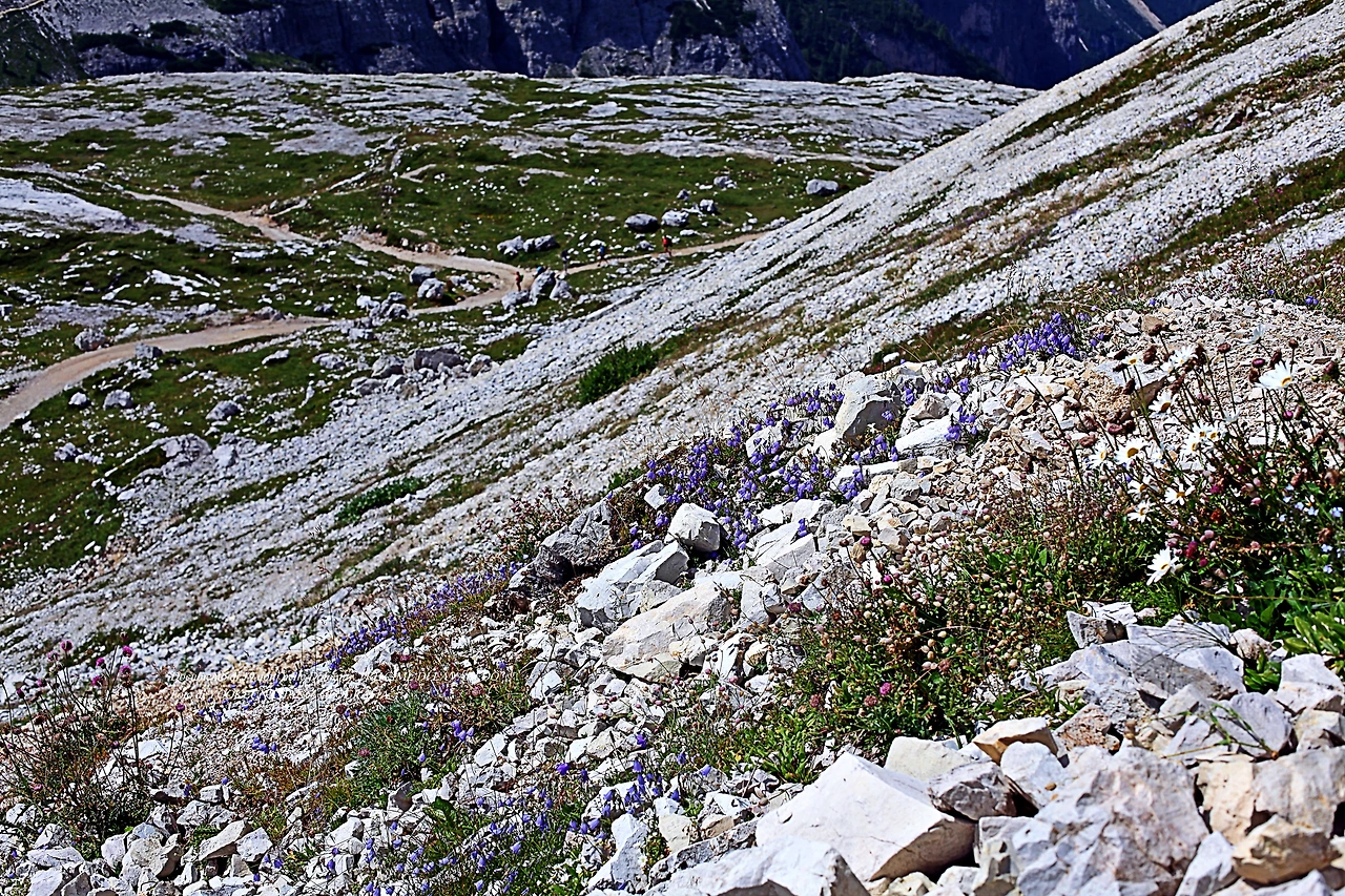 가파른 오솔길 곁에는 풀꽃들이 아우성이다. 나는 돌로미티에서 만나는 풀꽃들이 이곳에서 죽어간 넋이 환생한 것으로 생각했다.