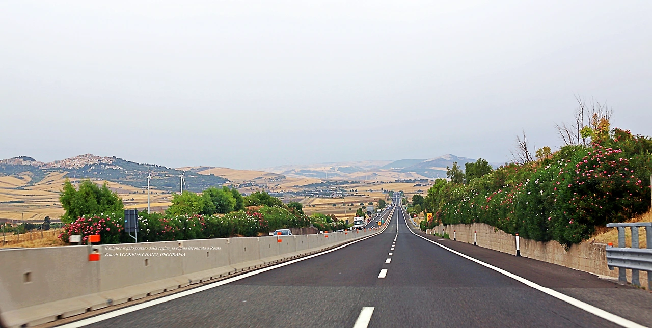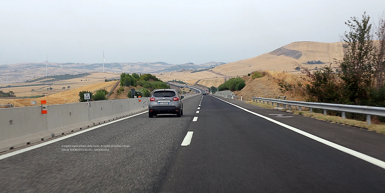 다른 점이 있다면 이탈리아 반도 동쪽에서 서북쪽으로 길게 이어지는 중부 고속도로의 풍경이었다. 바를레타에서 나폴리로 이어지는 구간에서는 구릉지대에서 특별한 풍경이 이어지고 있었다. 추수가 끝난 듀럼 밀밭의 풍경이 매우 이국적이었으며 창밖에서 실내로 퇴비 냄새까지 풍기곤 했다.
