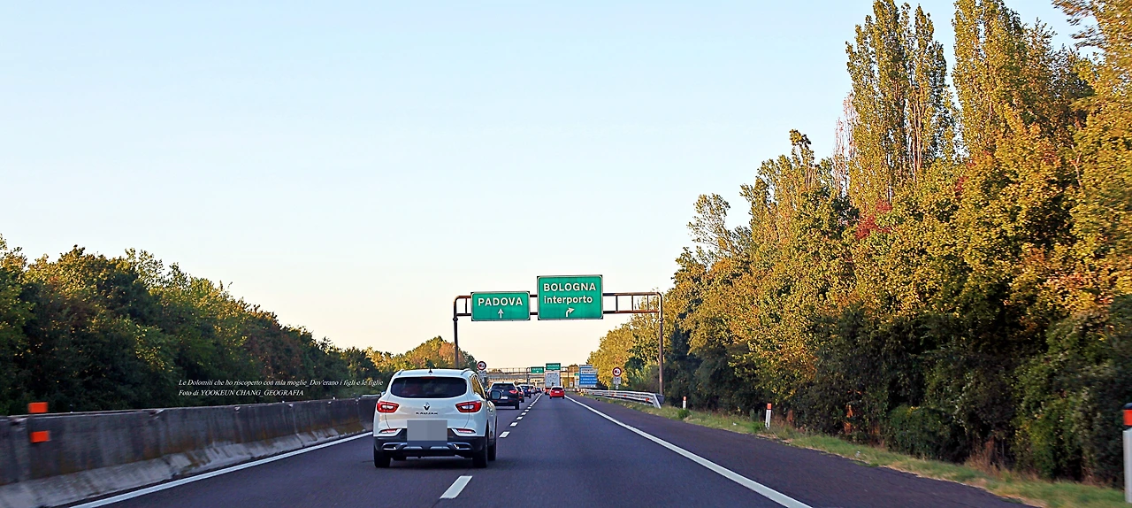 돌로미티로 가는 여정.. 우리가 살고 있는 이탈리아 남부 뿔리아 주 바를레타에서 이탈리아 중북부 빠도바를 통과할 무렵 해가 저물고 있었다. 아직도 돌로미티의 배후 도시 꼬르띠나 담빼쬬에 도착하려면 서너 시간은 족히 더 달려야 한다. 바를레타에서 돌로미티까지 거리는 937km에 이르고 자동차 주행시간은 대략 10시간에 이른다. 우리는 짬짬이 쉬었다 갔으므로 실제로 목적지에 도착하려면 주변이 까만 밤이라야 했다.