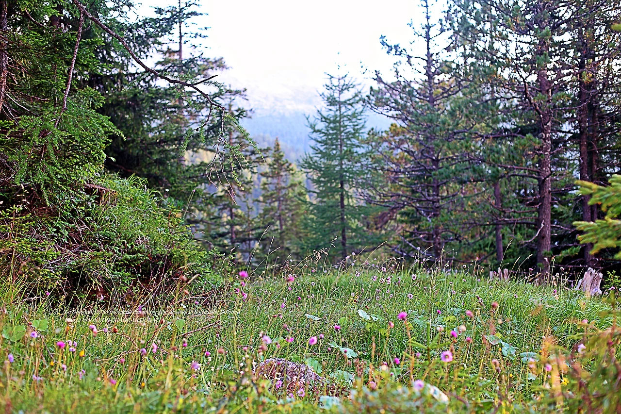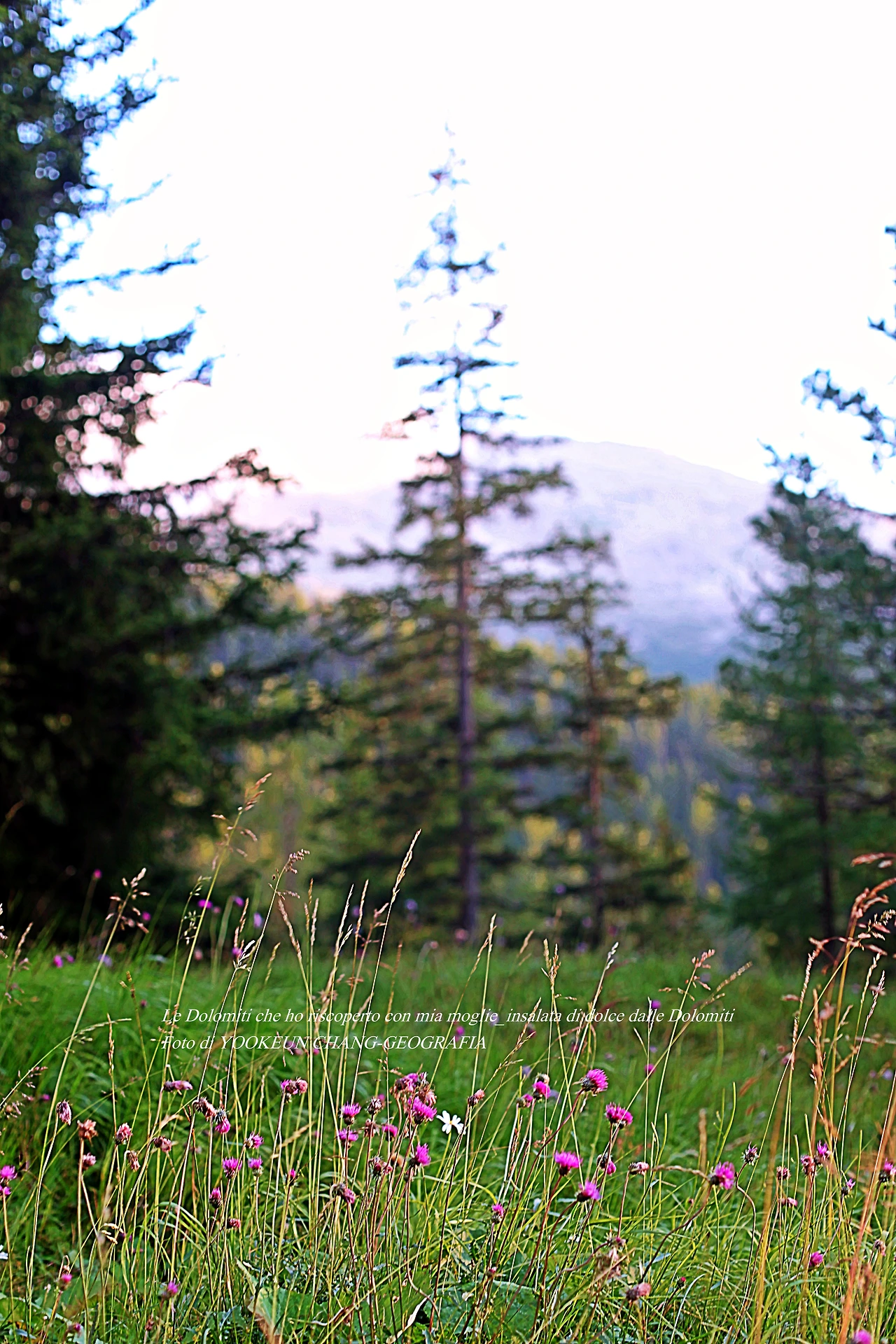 그녀와 나는 조물주의 부르심에 따라 돌로미티의 숲 속에서 잃어 비린 시간을 되찾고 있었다.