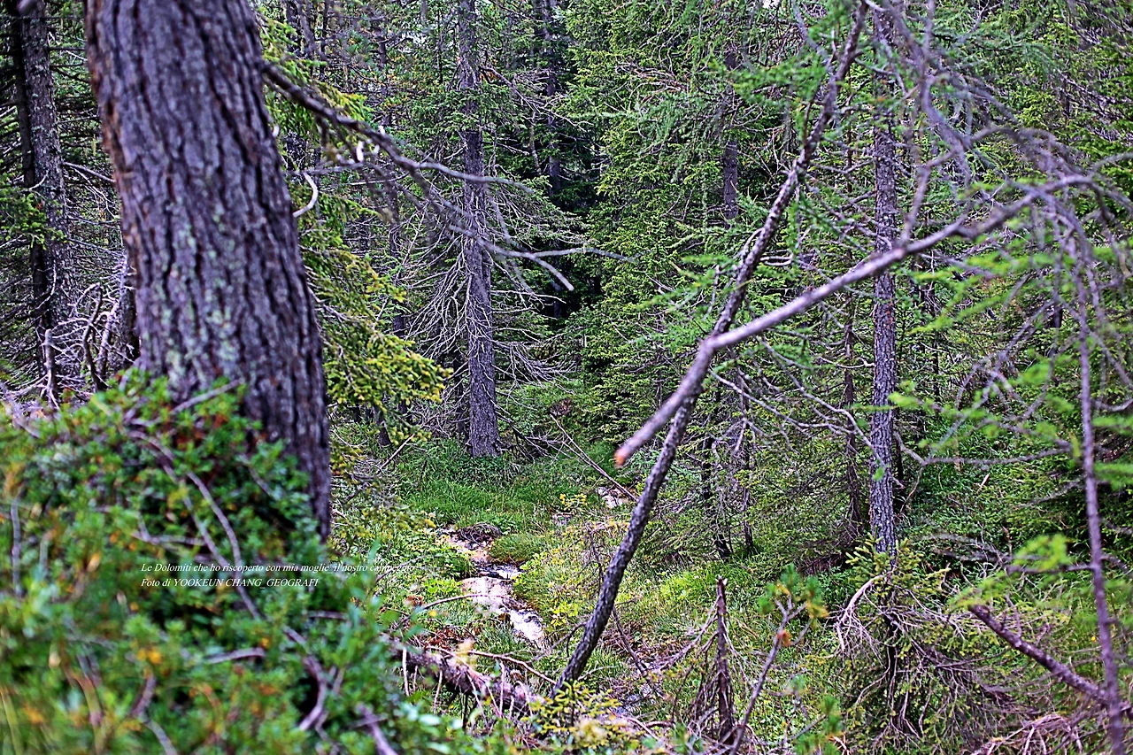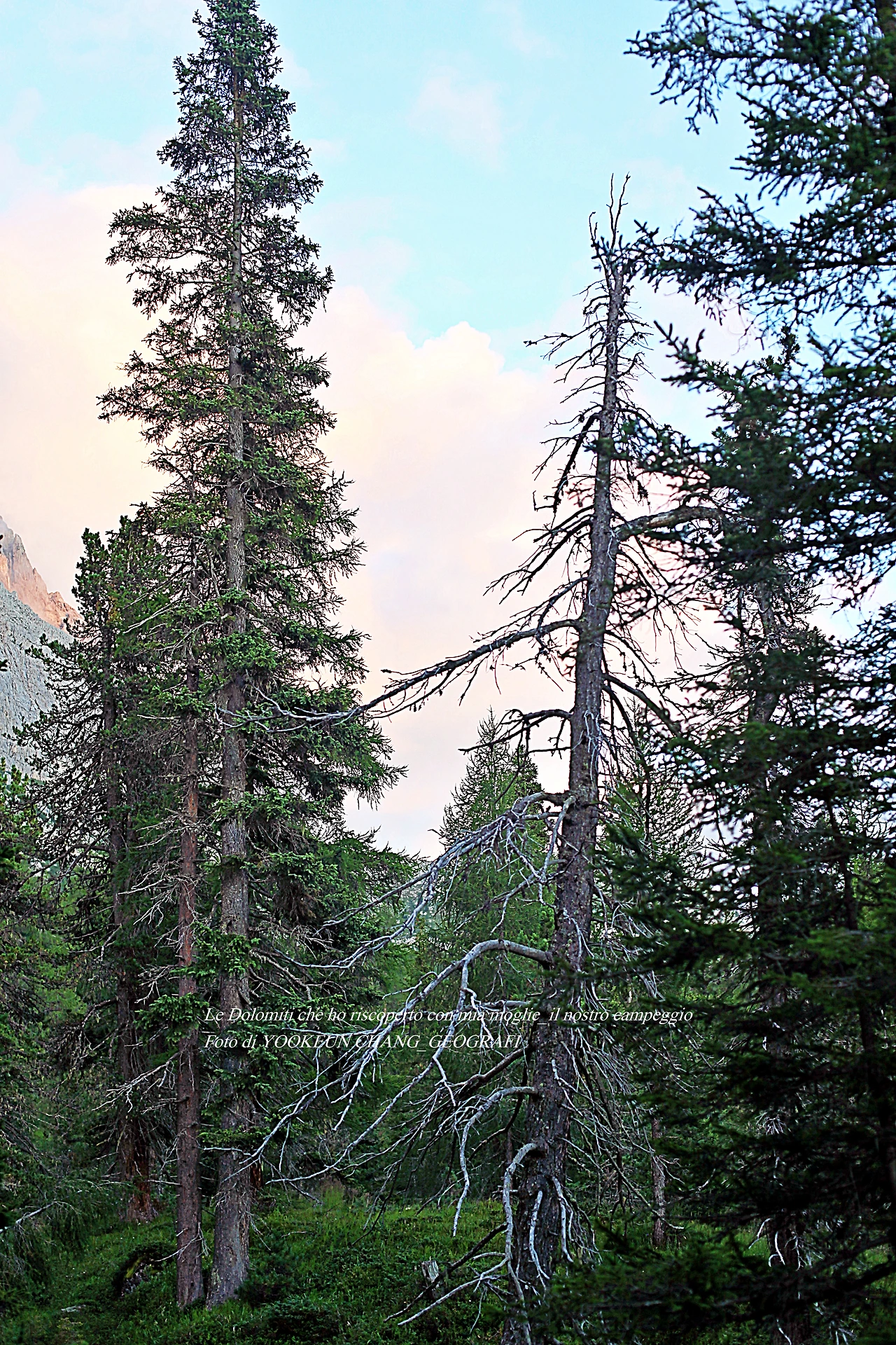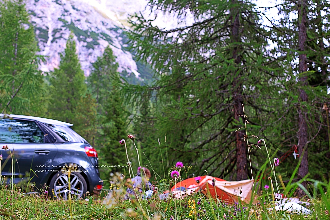 나는 돌로미티의 빠쏘 퐐싸레고 고갯마루 8부 능선에 위치한 작은 계곡에서 하니와 함께 시간을 보내고 있었다. 그 숲 속에는 작은 개울이 쉼 없이 졸졸 거리며 흐르고 있었다. 개울가에는 이끼들이 새파랗게 돋어나 있었다. 눈을 들어 하늘을 올려다보면 나무의 정령들이 손을 흔들며 인사를 건넸다.