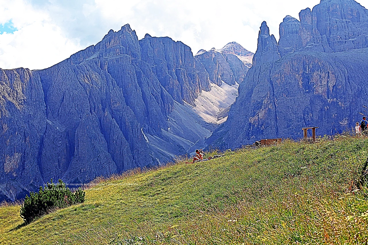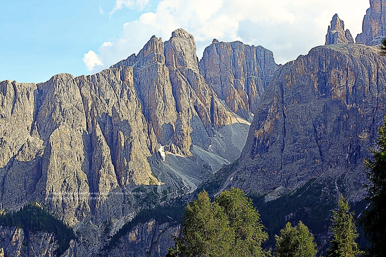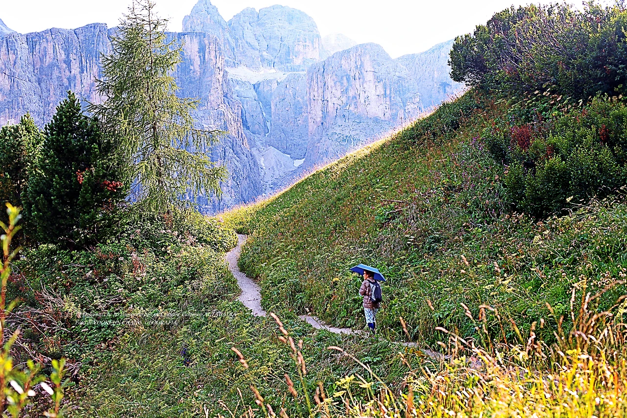 돌아오는 길에 다시 만난 그루뽀 델 셀라 꼬르봐라(Gruppo del Sella Corvara BZ) 산군의 장엄하고 신비로운 모습이 시선을 빼앗는다. 우리에게 저 계곡 사이로 나 있는 트래킹 루트는 그림의 떡으로 변했다.