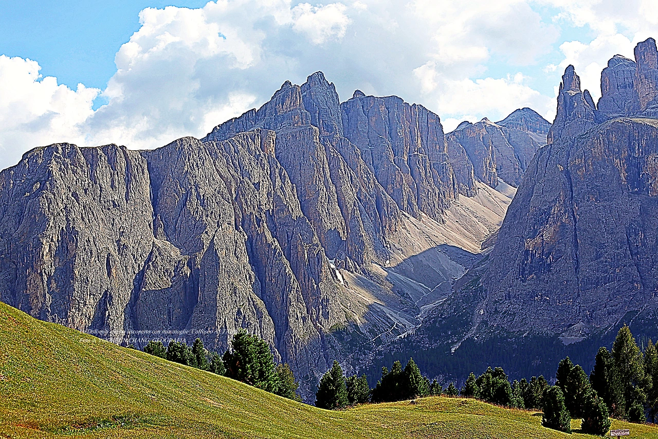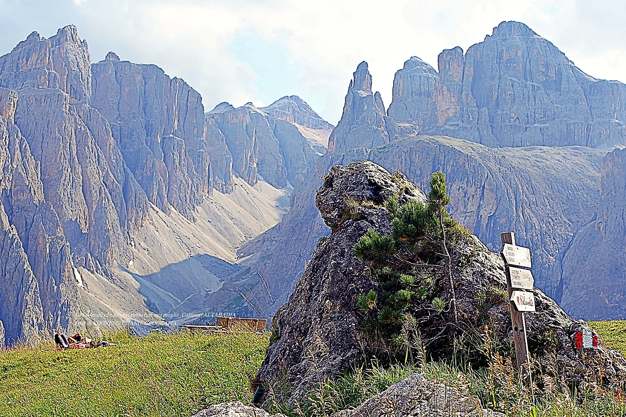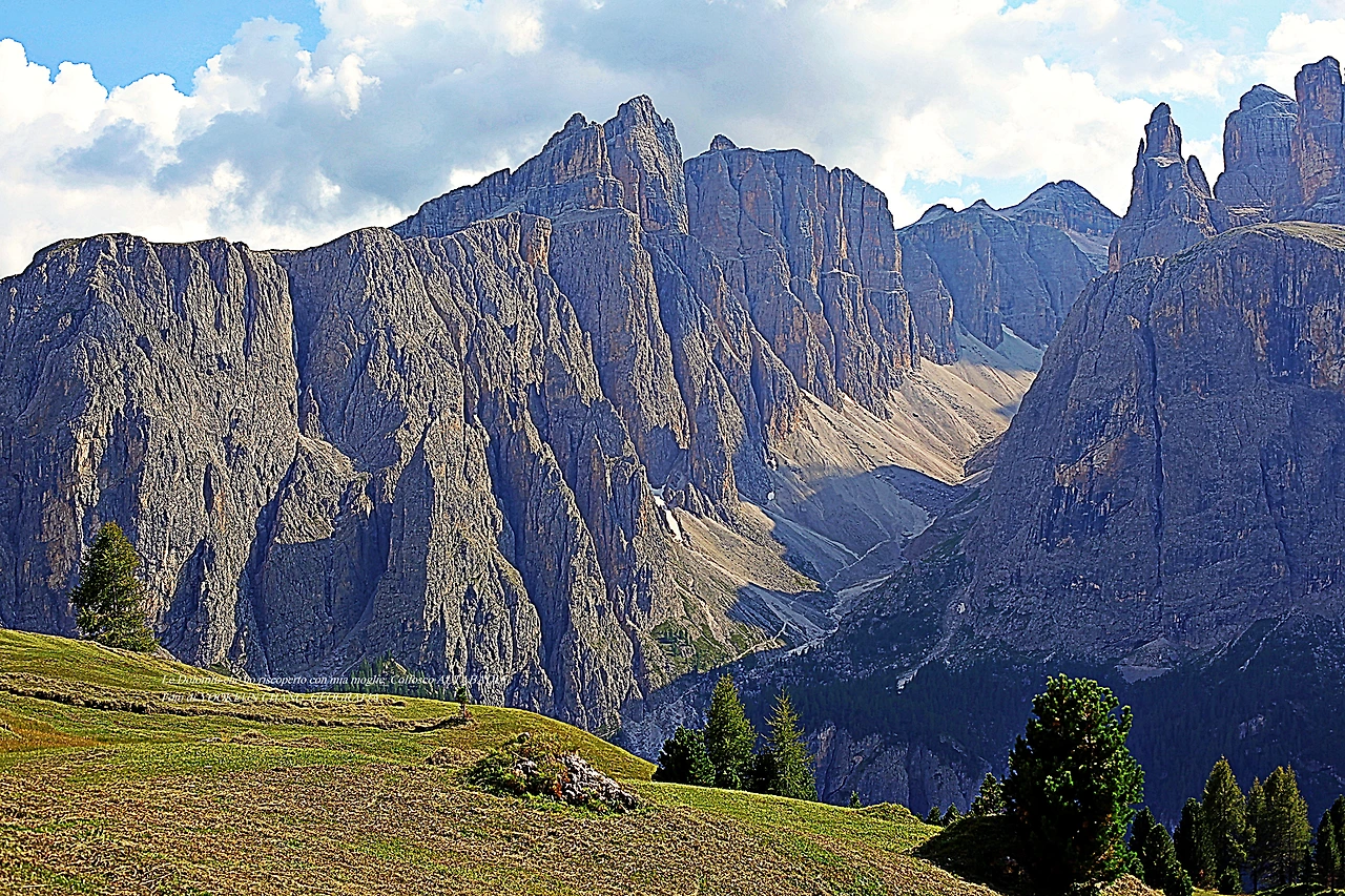 돌아오는 길에 다시 만난 그루뽀 델 셀라 꼬르봐라(Gruppo del Sella Corvara BZ) 산군의 장엄하고 신비로운 모습이 시선을 빼앗는다. 우리에게 저 계곡 사이로 나 있는 트래킹 루트는 그림의 떡으로 변했다.