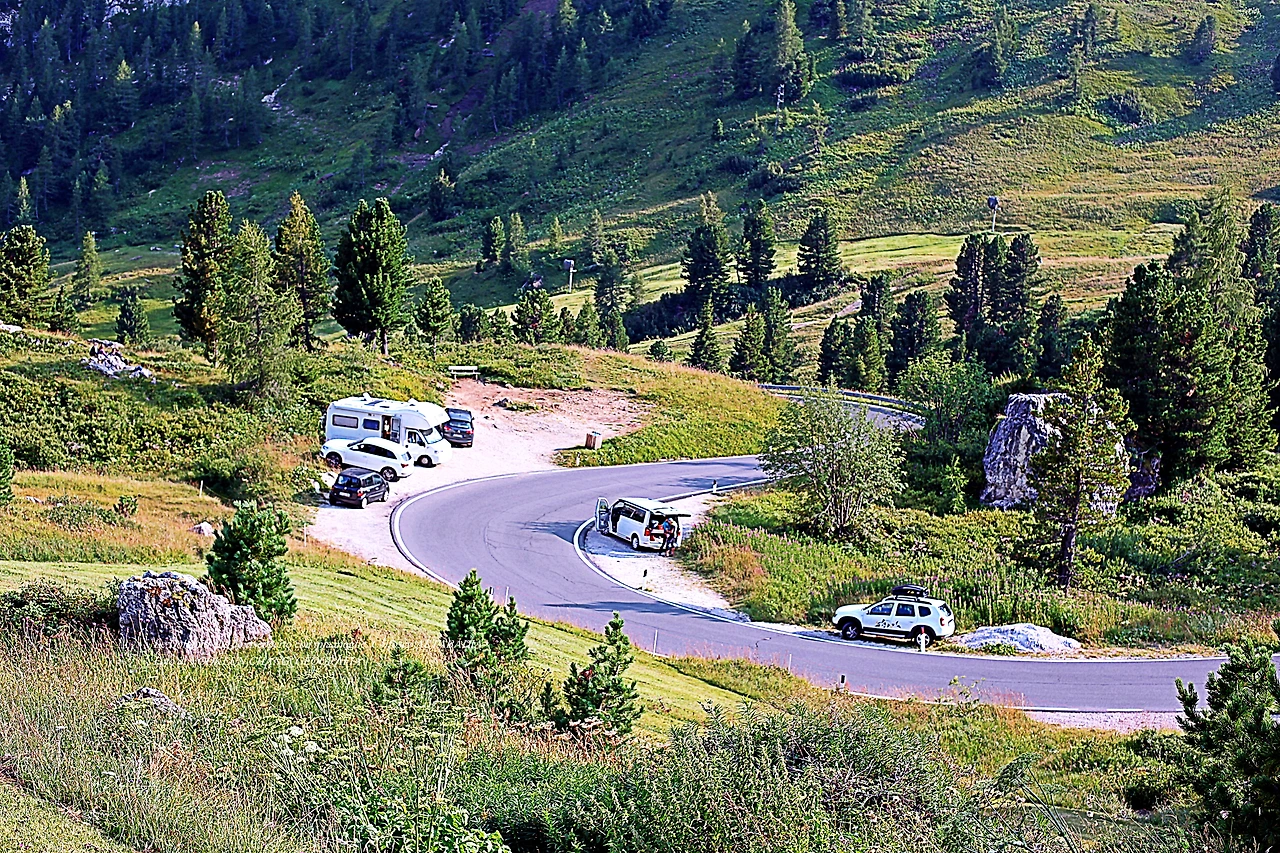 그녀와 함께 4시간짜리 짧은 하이킹 루트를 끝마치고 빠쏘 가르데나 9부 능선의 주차장 가까이 도착했을 때.. 돌로미티 여행의 발이 되어주었던 자동차가 캠핑카 옆에서 우리를 기다리고 있었다.