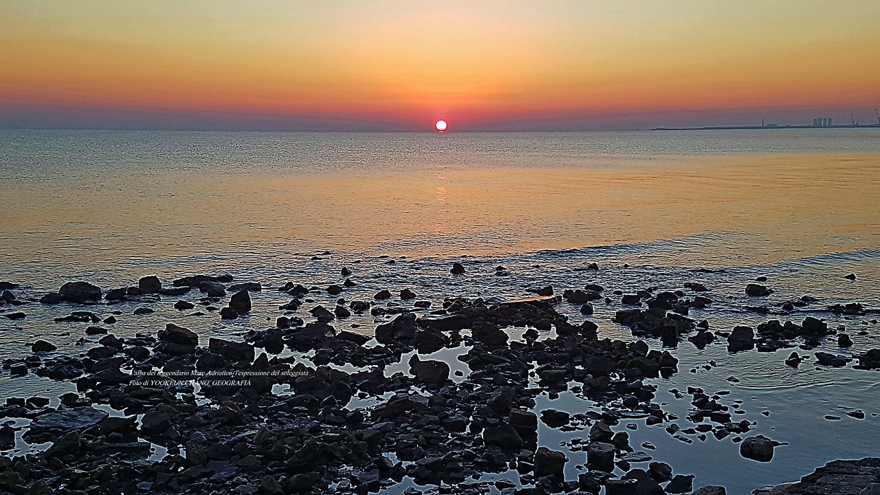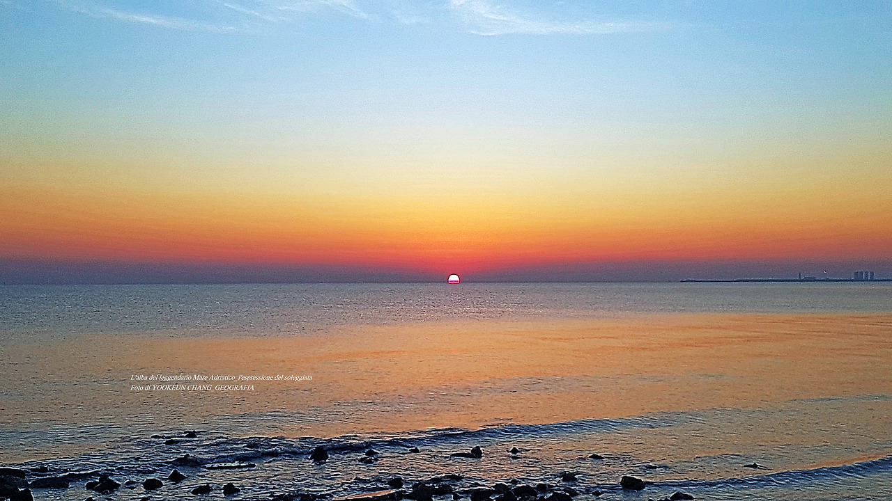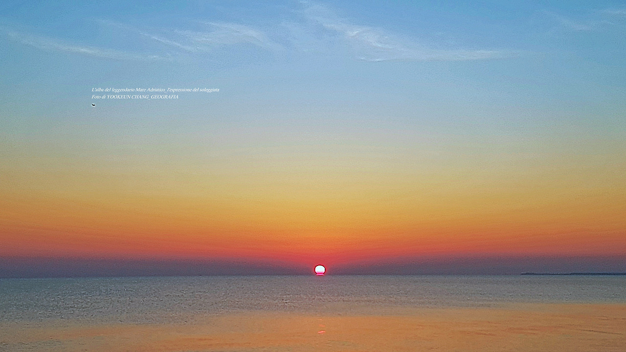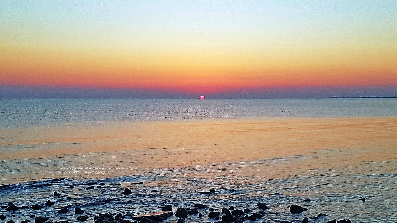 아드리아해의 해돋이는 똑같은 모습을 볼 수 없다. 다만, 해무가 없을 때는 수평선 위로 짙고 붉은 띠를 보인다.