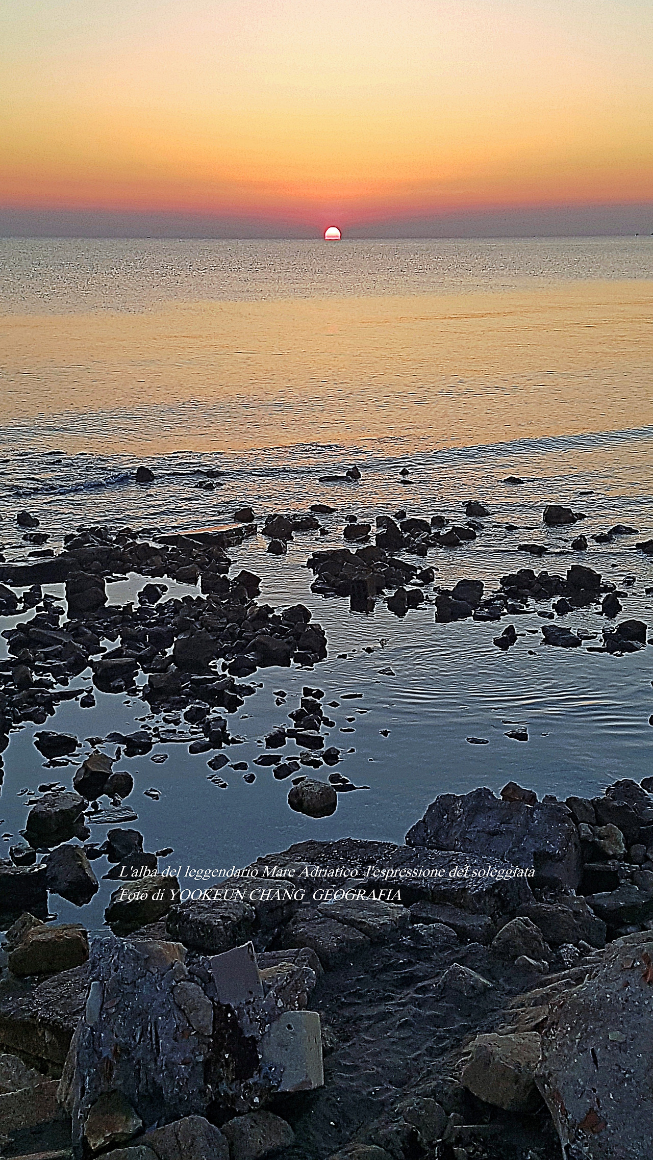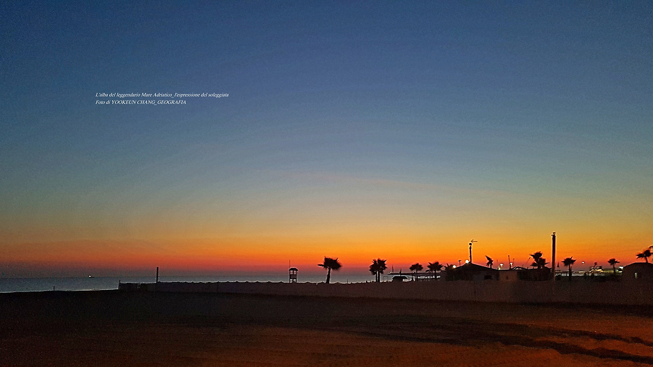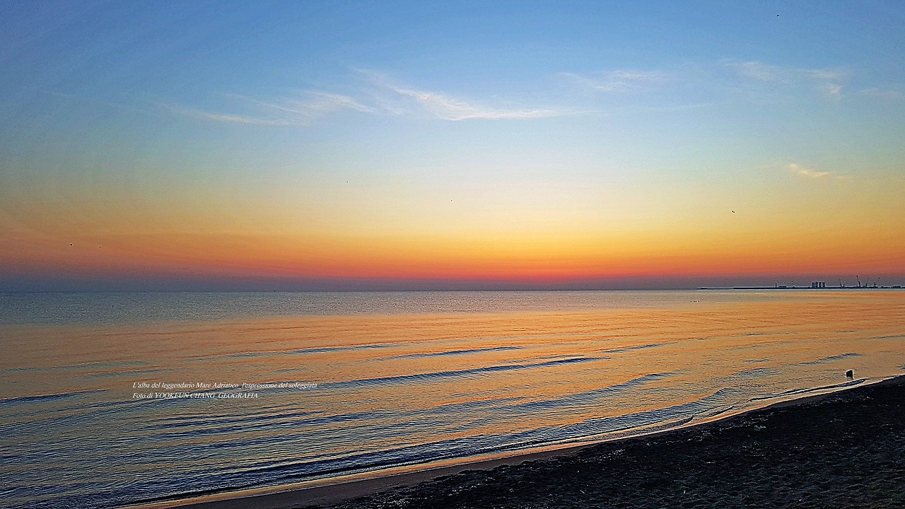 아드리아해의 해돋이는 똑같은 모습을 볼 수 없다. 다만, 해무가 없을 때는 수평선 위로 짙고 붉은 띠를 보인다.