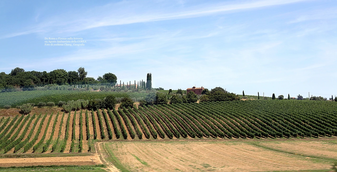 토스카나(Toscana) 주와 라찌오(Lazio) 주 및 움브리아(Umbria) 주를 거쳐 지나는 피렌체_로마 노선의 풍경은 이탈리아 농촌의 모습을 한눈에 볼 수 있다. 이탈리아는 우리나라와 같은 반도 국가이지만 상대적으로 산이 적은 이탈리아의 농촌 모습은 광대한 평원을 보는 듯한 모습인 것. 또 차창 밖은 오래전에 마주쳤던 우리네 기찻길 풍경과 닮았지만 너무도 다른 모습이다. 이 같은 풍경은 이탈리아 남부로 가면 더더욱 도드라진다. 무엇보다 잘 정리 정돈된 농토를 통해서 이탈리아가 슬로푸드 강국이란 느낌을 강하게 받는 것.