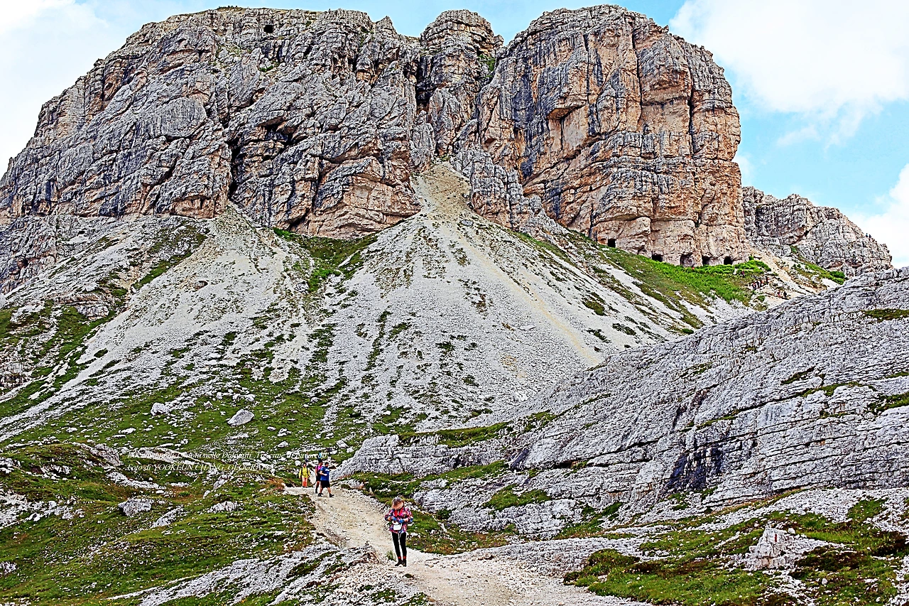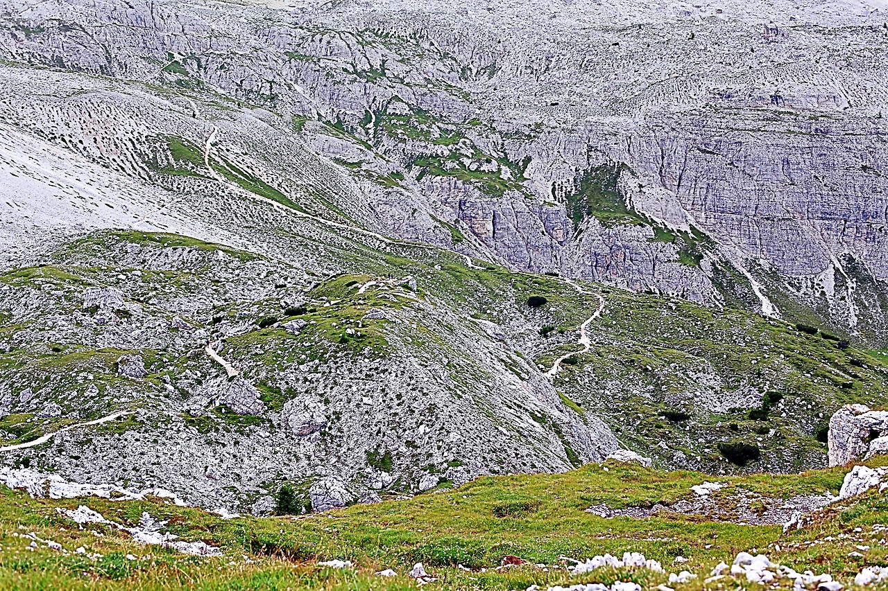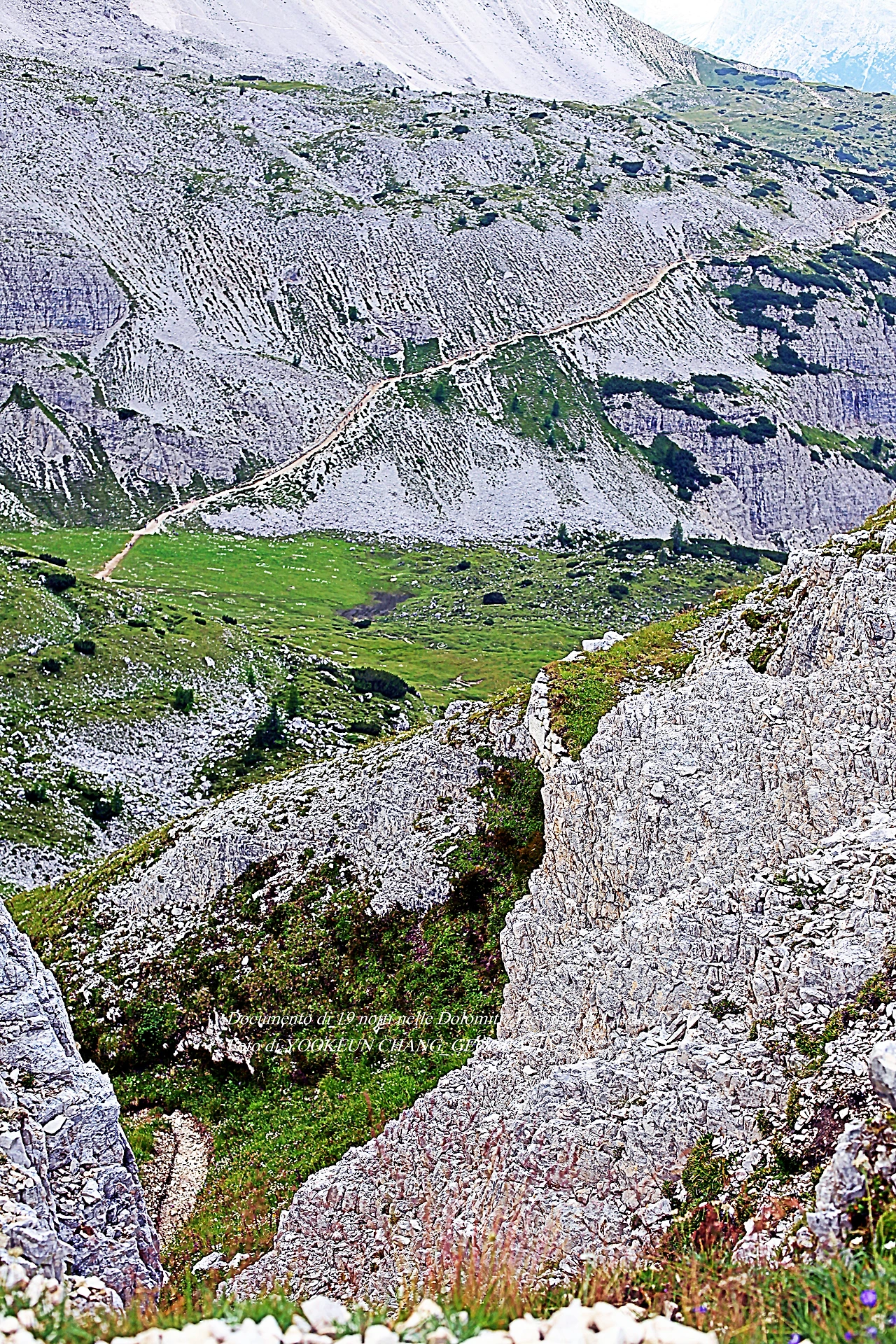 우리가 돌아갈 길을 바라보고 있노라니 잠시 힘든 일을 잊고 아름다움에 다시 취한다. 카메라의 배터리를 보니 한 눈금 밖에 남지 않았다. 돌로미티를 여행하는 동안 짬짬이 충전을 했지만 비경들이 충전 눈금을 마구 앗아갔다.