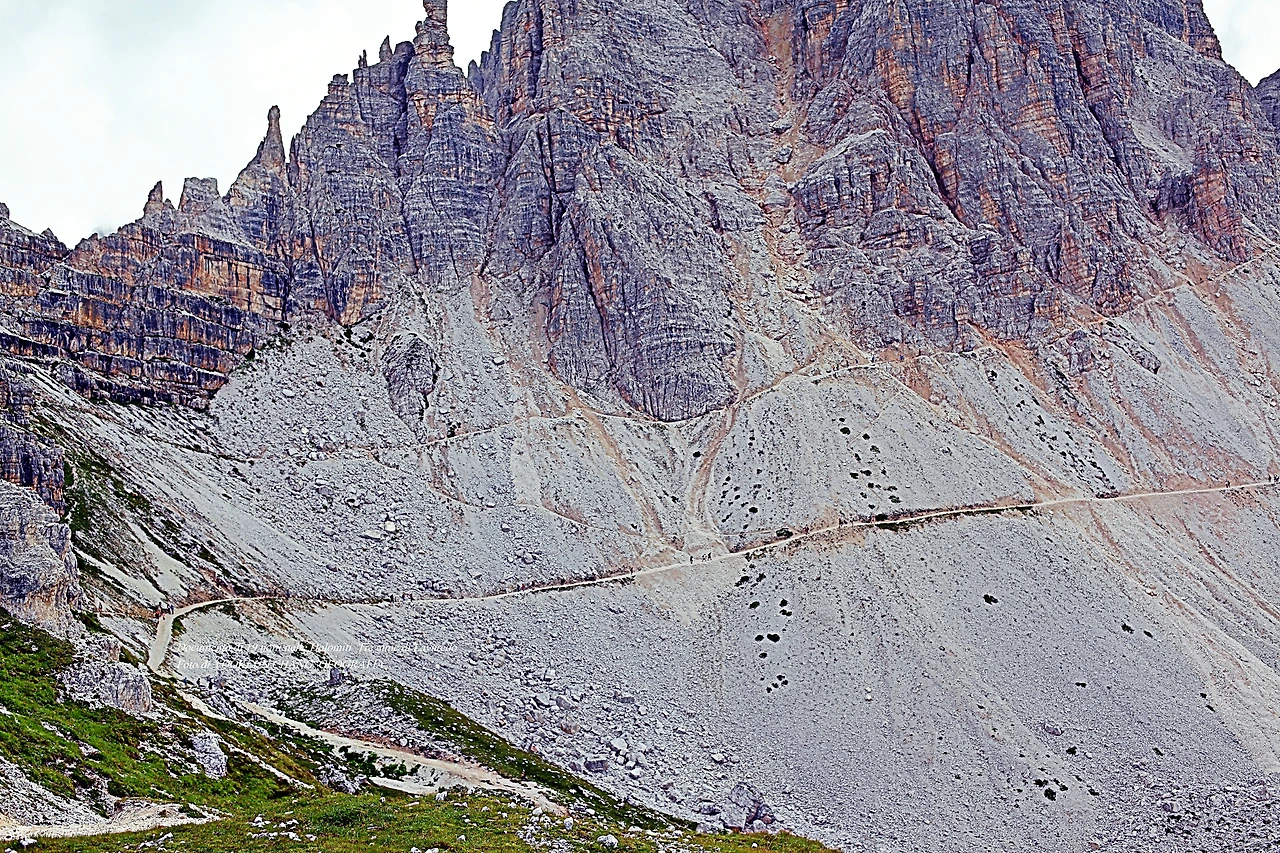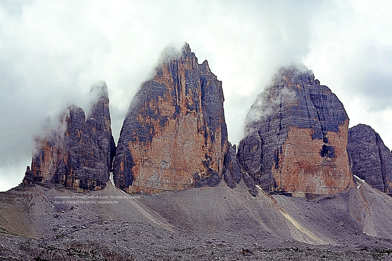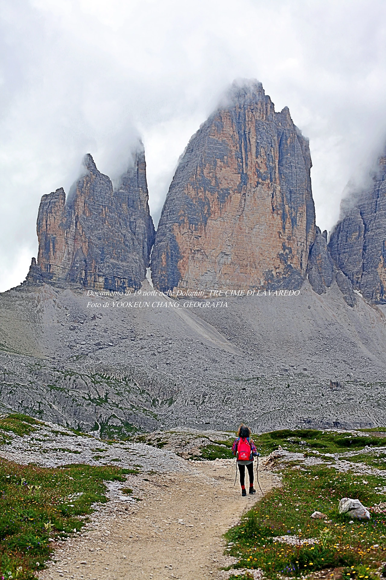 저 멀리 뜨레 치메 디 라바레도의 세 개의 봉우리가 우리를 빤히 쳐다보고 있다. 봉우리 뒤로 먹구름이 몰려들고 있었고 간간히 빗방울이 흩날리고 있었다. 걸음을 재촉해야 했다.