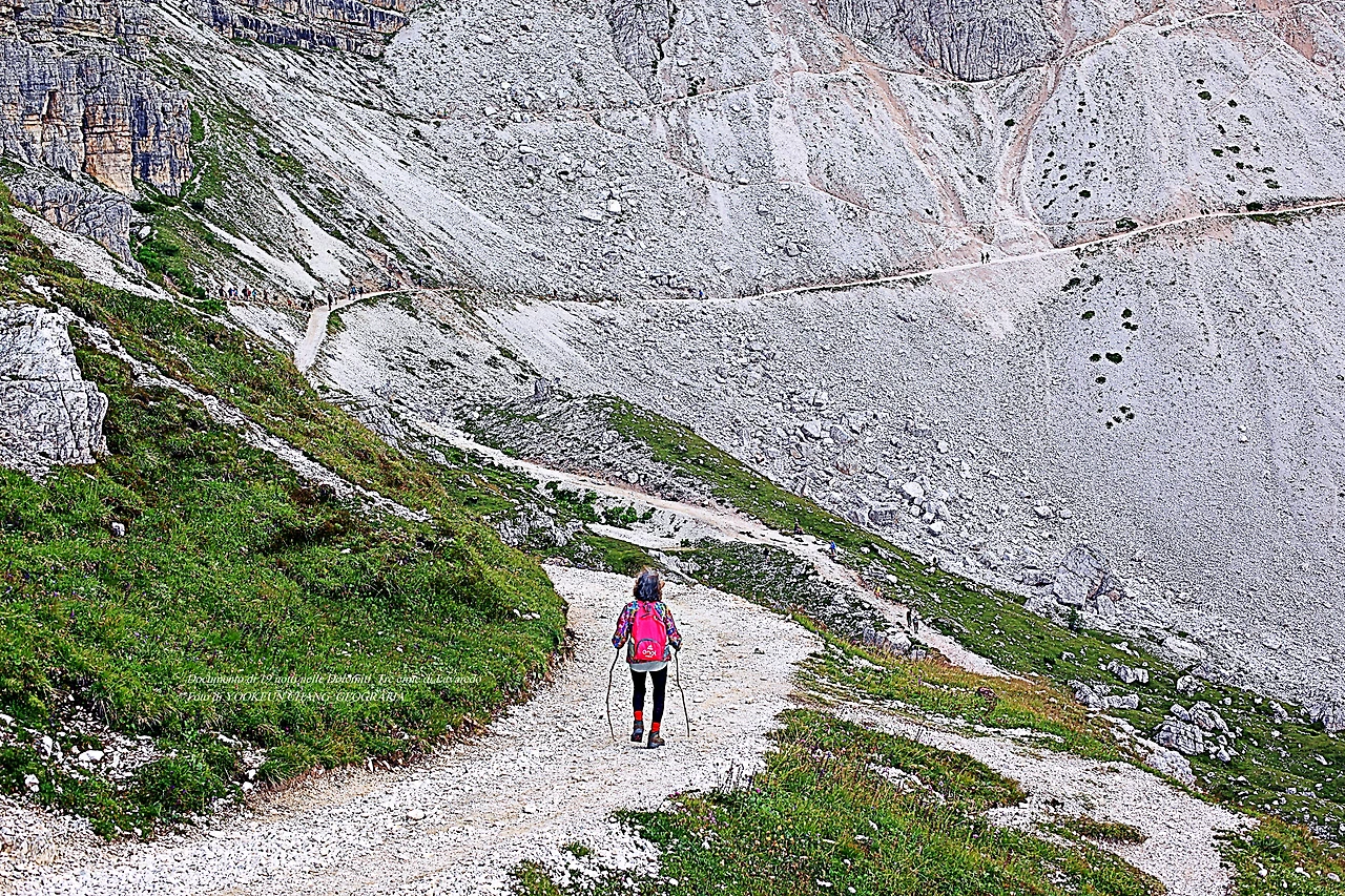 정지된 풍경.. 그녀의 두 손에 나무 작대기가 들려있다. 그냥 한 번 둘러보고 싶었던 돌로미티는 해프닝을 만들면서 19박 20일 동안 우리를 붙들어 놓은 것이다. 결승선은 아직 저 먼데 있다. 기록, 돌로미티(Dolomiti) 19박 20일은 계속 이어진다.