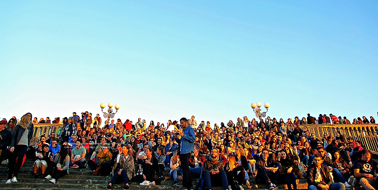 시내 관광을 마친 사람들이 이곳에 모인 이유는 딱 하나.. 정서 쪽으로 바라보게 만든 광장 한쪽의 계단에서 만나는 해넘이 풍경은 두고두고 이 도시를 잊지 못하게 만든다. 해넘이가 시작되면 뽀르따 산 지오르지오(Porta San Giorgio) 언덕 너머로 황홀한 풍경이 연출된다.