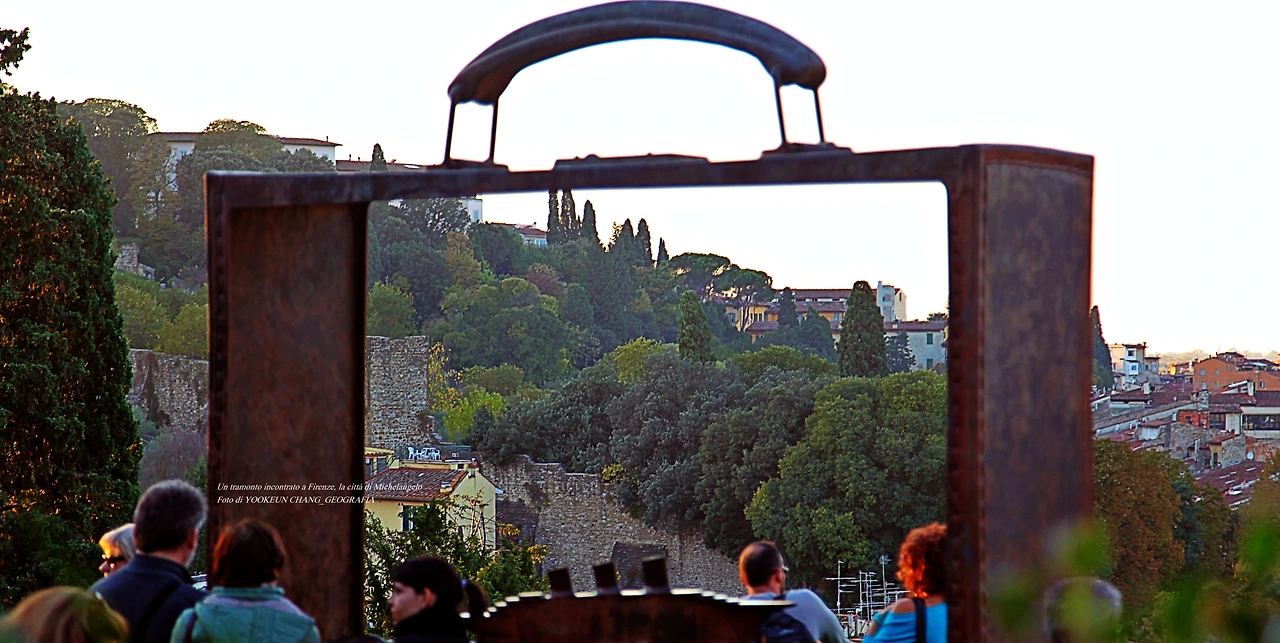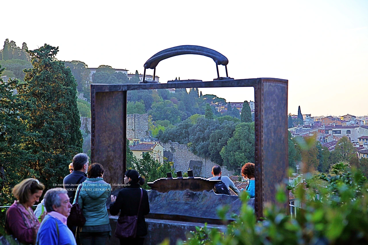 그래서 사람들이 미켈란젤로의 도시를 방문하면 해 질 녘 반드시 들리는 곳이 광장 한쪽에 마련된 계단이 아닌가 싶다. 그곳에서 산 지오르지오 언덕 너머로 자취를 감추는 해넘이를 보면서 미켈란젤로를 그리워하며 하루 일과를 마무리하는 것이다. 그들 앞에는 곧 미켈란젤로가 바라봤던 해넘이의 장관이 연출될 것이며 당신이 부활한 것처럼 느끼게 될 것이다. 최소한 7년 전 내게 일어난 사건은 이러했다.