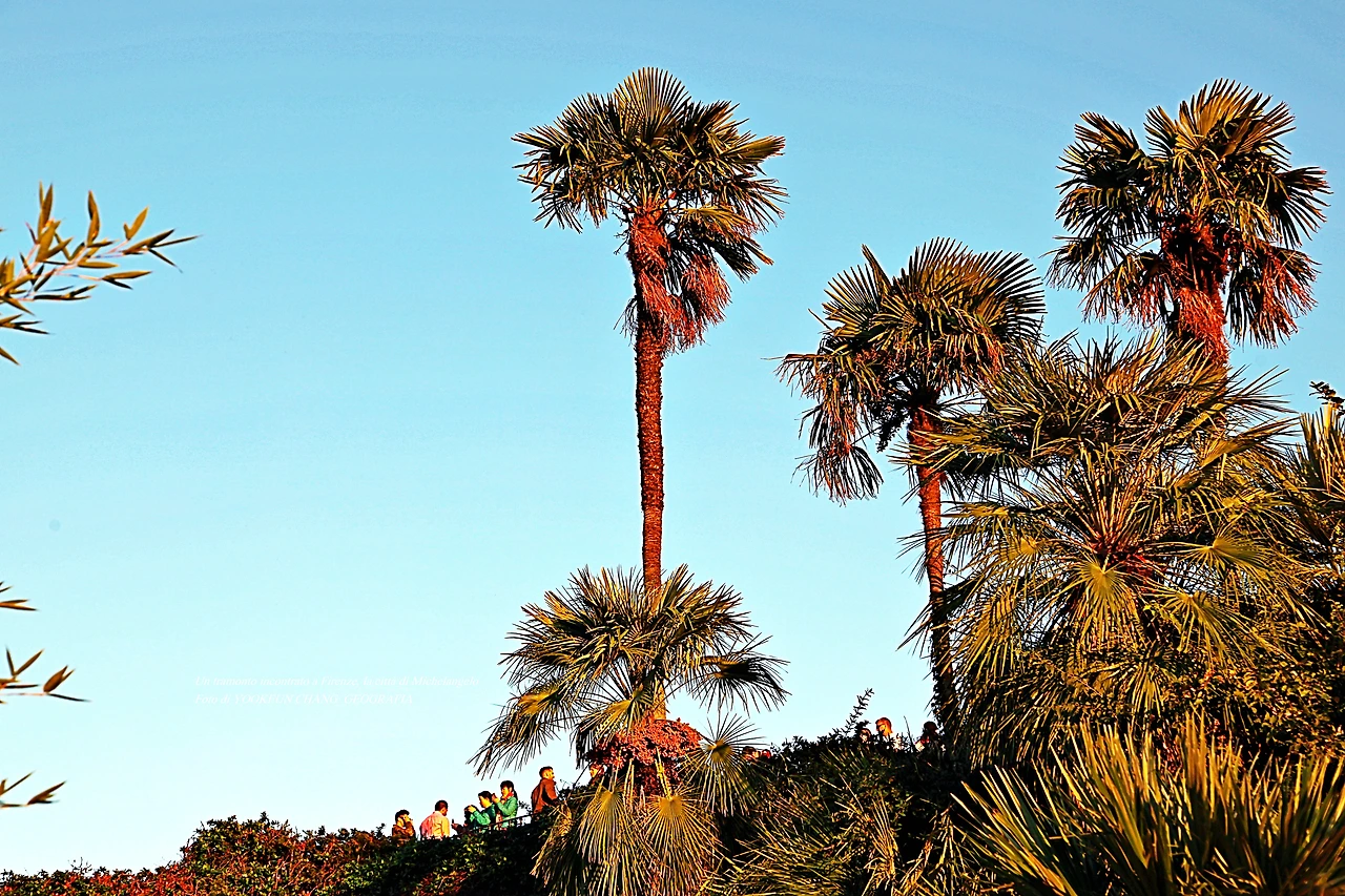 사람들은 해 질 녘이 되면 하나둘씩 삼삼오오 미켈란젤로 광장의 한 모퉁이에서 정서 쪽으로 바라보게 된다.