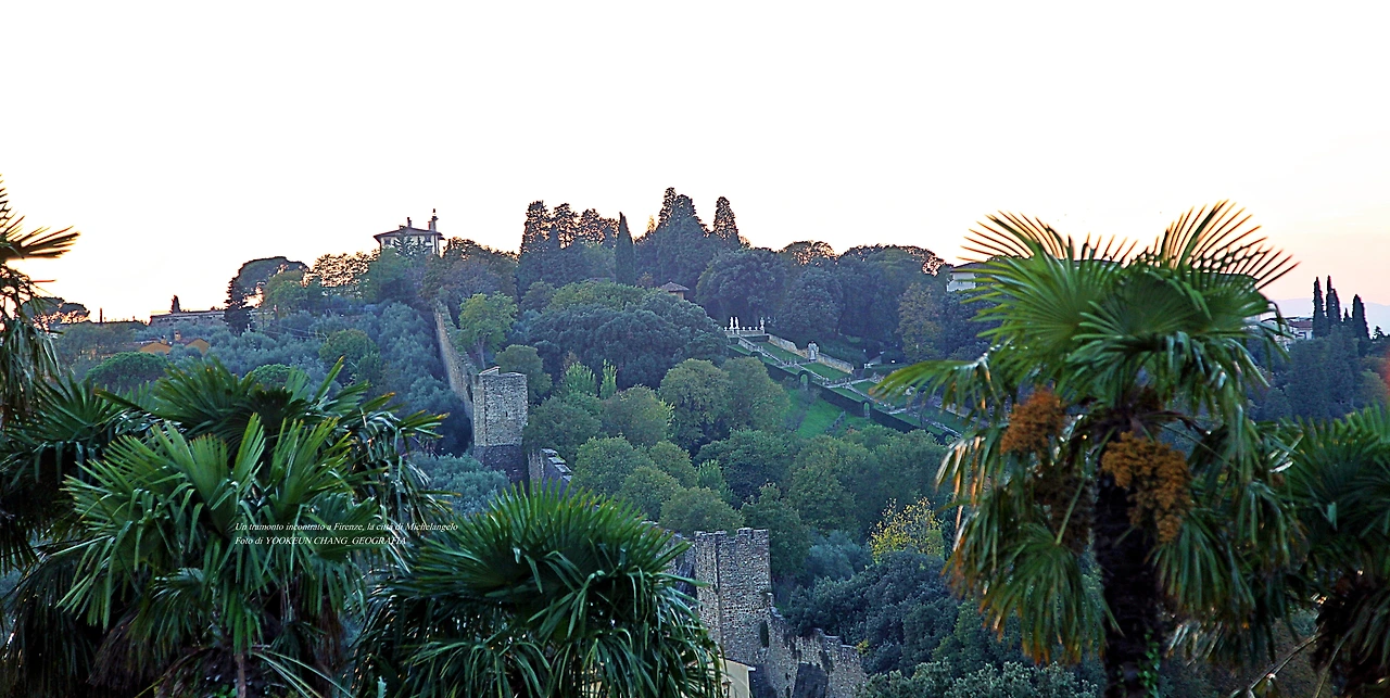 그곳에 서거나 앉아서 좌우로 고개를 돌려보면 좌측으로 해넘이가 시작되는 뽀르따 산 지오르지오(Porta San Giorgio)의 언덕이 보이고, 우측으로 아르노 강 너머 퓌렌체의 나지막하고 정겨운 집들이 두오모 등과 함께 아름답게 어우러져 있다. 우리 행성에서 이렇게 '물 좋고 정자 좋은 곳'이 또 있을까..