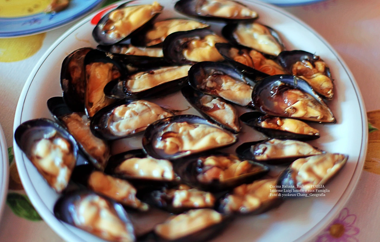 ♡프랑코가 이날 특별히 나를 위해 바를레타에서 가까운 트라니로 이동하여 싱싱한 갑오징어(La seppia, Sepia officinalis )와 홍합(Cozze)을 사 왔다. 이틀 전 아침에 커피를 마시면서 "바를레타에서 싱싱한 해물을 날 것으로(Crudo) 먹을 수 있느냐"고 물었더니, 프랑코가 즉각 실행에 들어간 것이다. 이날 갑오징어와 홍합은 레몬즙을 뿌린 후 나 혼자만 주로 다 먹었다. 피렌체의 중앙시장에서도 이 같은 해물이 있지만 신선도가 떨어져 날 것으로 먹지 못할 뿐만 아니라 가격도 턱없이 비쌌다. 위 자료 사진 오른쪽은 프랑코가 내놓은 뿔리아 산 비노 비앙꼬.. 날 것을 안주 삼아 한 병을 내가 거의 다 마셨지 아마도..^^