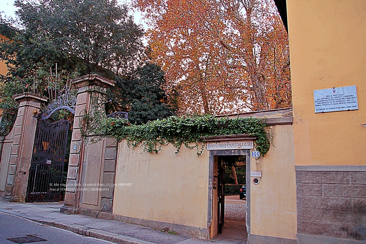 지금 보고 계시는 장면이 주 출입구로 일반인들의 출입이 금지되는 사유지이며 매우 큰 면적을 차지하고 있다. 이름하여 지아르디노 또르리지아니(Giardino Torrigiani (privato))라 부른다. 공원이 사유지임을 밝히고 있다.