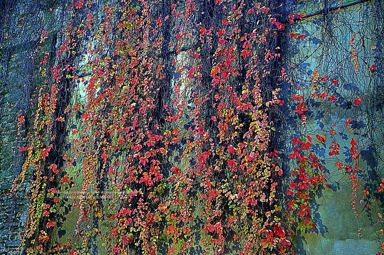 어느 날 나는 출근길에 전혀 뜻밖의 풍경을 만나게 됐다. 평소 다른 골목길을 걸어서 출근하다가 모처럼 사방이 성처럼 둘러 쳐진 높다란 담벼락 옆으로 출근을 했다. 그때 저만치서 울긋불긋한 광경이 눈에 띄는 것이다. 그건 얼마 전에 봤던 담쟁이덩굴이었다.