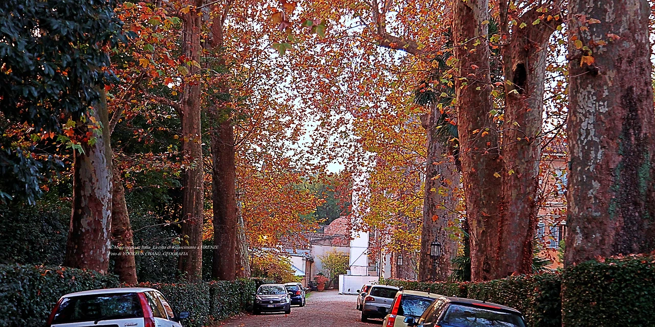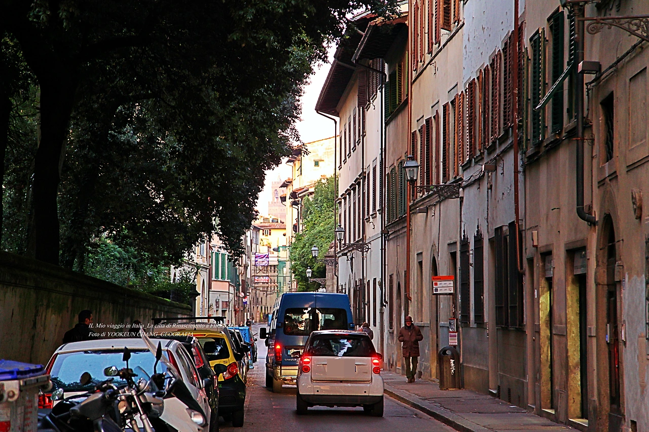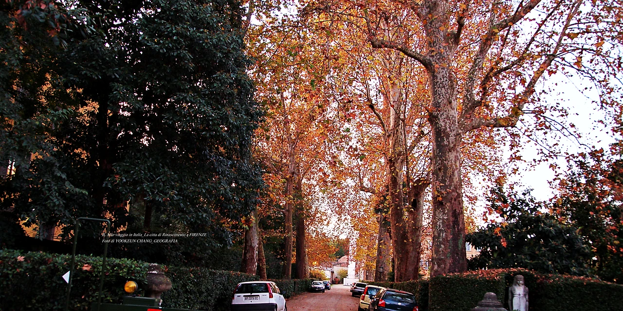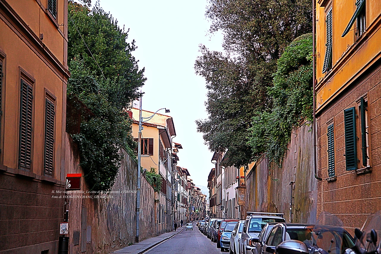 지난 여정 여행자들이 빠뜨린 피렌체의 명소 편 서두에 이렇게 썼다. 여기까지 스크롤을 내리면서 만난 풍경들은 뽀르따 로마나의 서쪽에 위치한 풍경들이다. 퓌렌체 중심에서 만날 수 없는 풍경들이 이곳에 위치해 있는 것이다. 숲이 무성한 이곳은 지아르디노 꼬르시 아날레나Giardino Corsi Annalena) 주변의 풍경이며, 이곳에서 지근거리에 위치한 숙소에서 리스또란떼로 출근하면 자주 만나게 되는 낯익은 풍경이다.