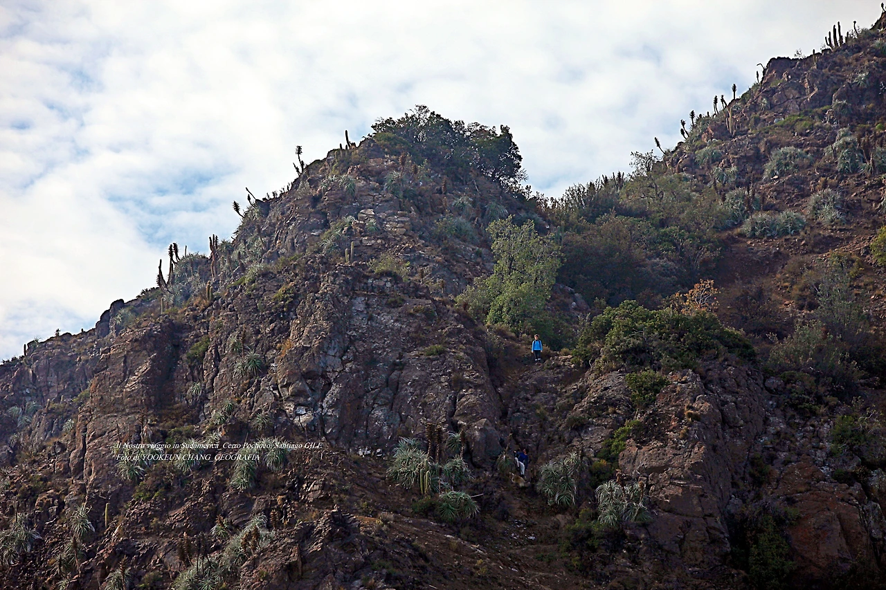그곳에 세로 뽀쵸코(CERRO POCHOCO, 1882m)라는 산이 있었다. 세로 뽀쵸코.. 멀리서 볼 때 웅장한 느낌을 받은 안데스가 곁을 내어준 몇 안 되는 산이라고나 할까.. 산티아고 시민들이 자주 찾는 이곳은 우리로 말하자면 '동네 뒷산'인 셈이다. 그런데 동네 뒷산으로 막상 올라가 보니 카메라가 얼마나 거추장스러웠는지 모를 정도였다. 바디와 줌렌즈와 보조 렌즈와 도시락까지 챙기니 배낭이 묵직했다.