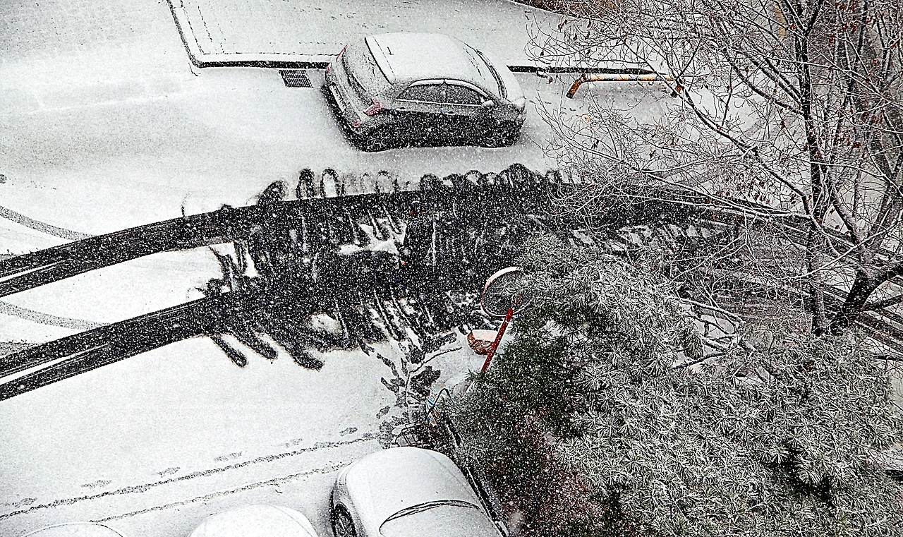 눈은 점점 더 쏟아지면서 지면 모두를 덮었다. 조경수와 가로수까지 전부 덮었다.