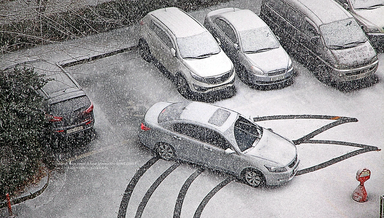 첫눈이 소담스럽게 내리는 이곳은 서울 강남의 K아파트 단지의 모습이다. 첫눈은 참 희한하지.. 사람들이 깊은 잠에 빠졌을 때부터 오시기 시작하는 것이다. 첫눈의 이런 속성(?) 때문에 내 가슴속에는 늘 마법의 하늘로 기억되고 있다. 한 잠 푹 자고 나니 세상이 온통 하얗게 변해있는 것이다. 나의 유년기..