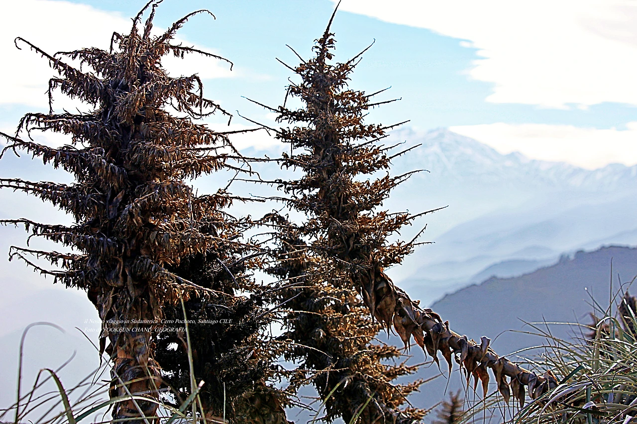 하니와 나는 칠레의 수도 산티아고에서 멀지 않은 쎄로 뽀쵸코를 등반하면서 점점 고도를 높이고 있었다. 초행길의 이 산에 오를 때 내 손에 들린 건 묵직한 카메라 장비가 전부였다. 그녀 또한 스틱 한 자루에 의지하며 무작정 산꼭대기를 향해 오르고 있는 것이다.