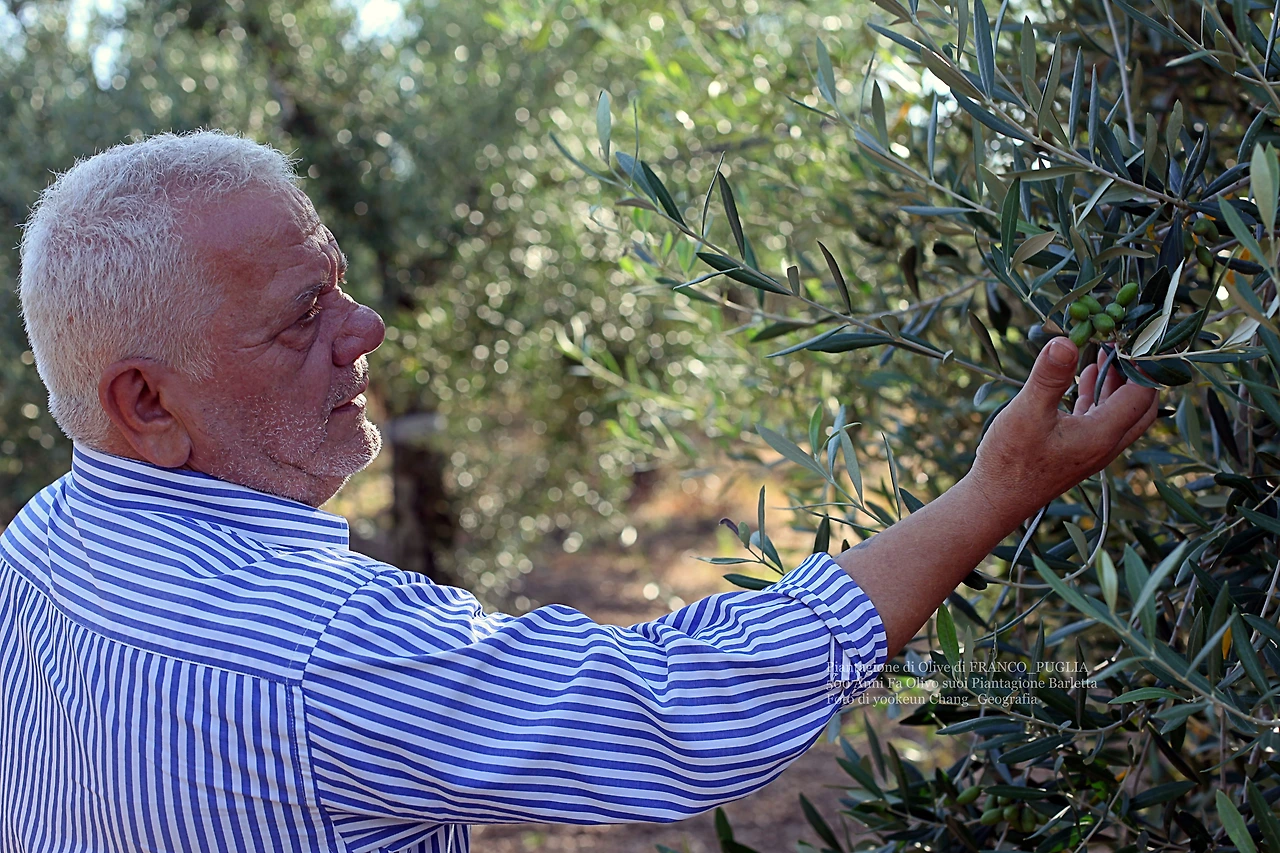 그는 루이지의 아버지로 이름은 프랑코 라노떼(Franco Lanotte)였다. 프랑코를 만나자마자 그는 거의 매일 아침 커피를 마시자며 나를 불러내는 동시에 바를레타 자랑을 끊임없이 했다. 그의 가족은 전부 바를레타 출신으로 토박이였는데 어느 날 내게 당신의 올리브 과수원을 보여 주겠다며 자동차로 루이지와 함께 셋이 동행했다. 그런 한편 자동차 속에서 내게 뿔리아산 올리브유를 먹어봤느냐고 물었다.