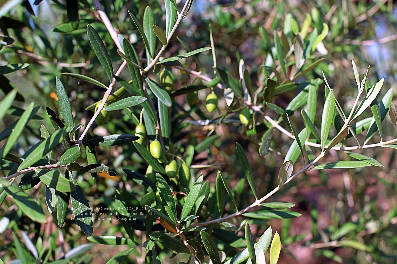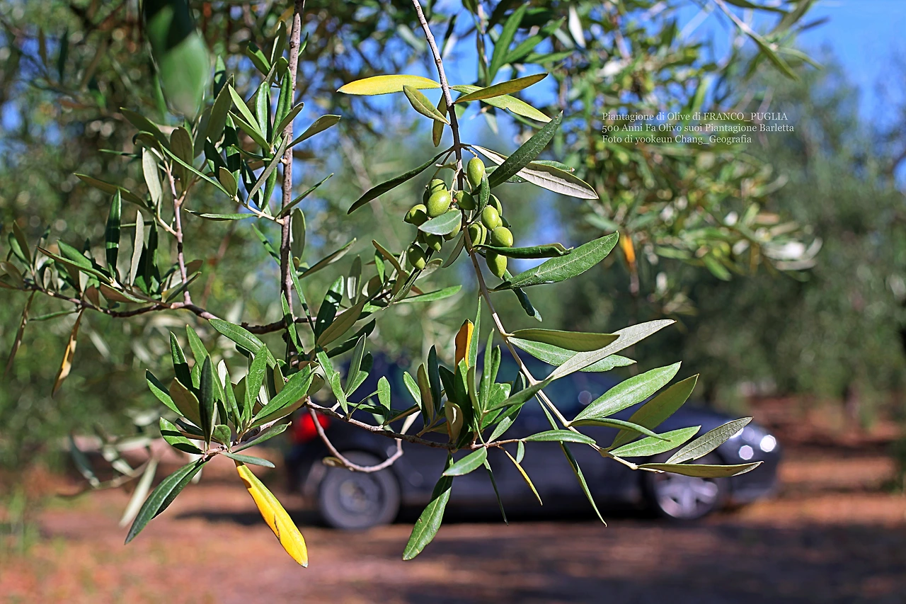 자동차는 바를레타 시내에서 겨우 10분 정도 떨어진 거리에 위치한 프랑코의 올리브 과수원에 도착했다. 그는 올리브 과수원을 너무 사랑한 나머지 나무 한 그루 한 그루마다 애정 어린 손길로 마치 아이들이나 가족처럼 대했다. 그런 한편 당신의 과수원에 심어진 나무 중에서 몇 군데를 가리키며 수령이 500년 이상된 나무들이라고 소개했다. 그 나무들은 위에서부터 아래로 스크롤바를 내리면서 본 자료 사진들이다.