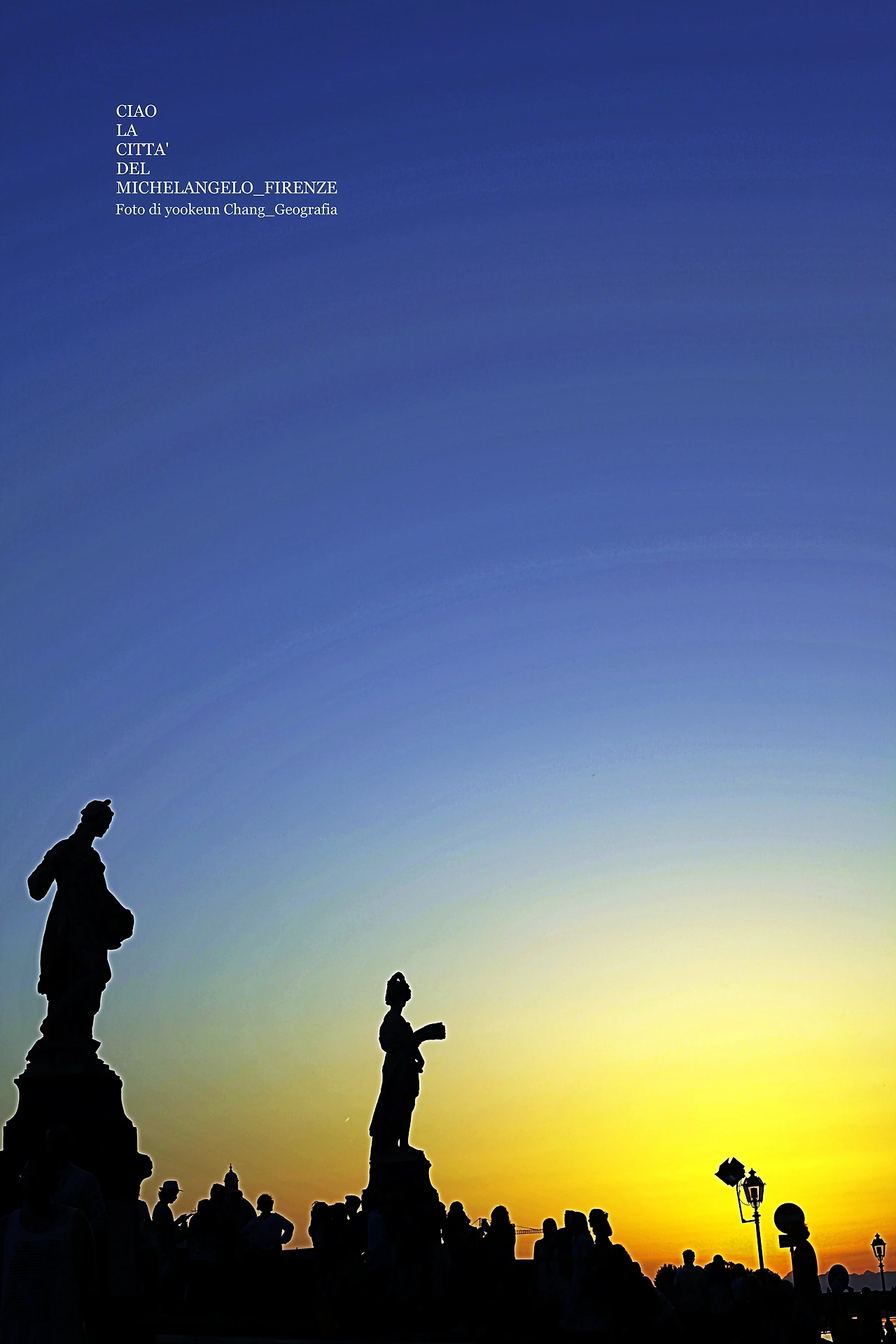 그리고 이날 내 가슴을 먹먹하게 만든 사건(?)이 생겼다. 뽄떼 베끼오까지 도달했는데 저만치 아르노 강 위로 해가 뉘엿거리는 것이었다. 처음 보는 풍경도 아니었건만 나는 그때부터 해가 저무는 쪽을 향해 걸음을 재촉했다. 그곳은 피렌체 현지에서 이탈리아어 인텐시보 과정을 위해 거의 매일 오가던 뽄떼 산타 트리니타(Ponte Santa Trinita)가 있는 곳. 피렌체에 명소가 아닌 곳이 없지만 이곳 또한 일몰 명소여서 저녁때만 되면 사람들이 바람도 쇨 겸 지친 몸을 일몰에 맡기는 것.