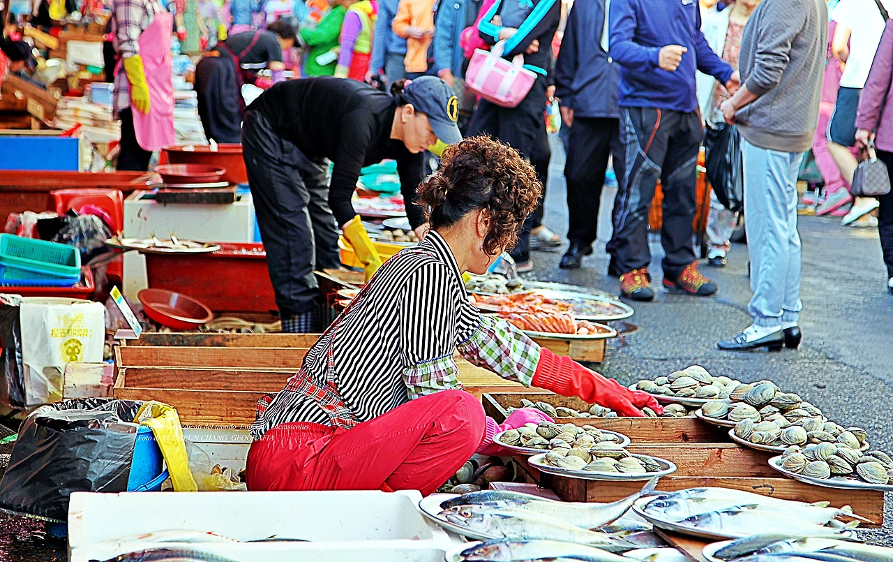 한 아주머니가 생선을 말리는 정겨운 풍경은 마산 어시장에서 모셔왔다.