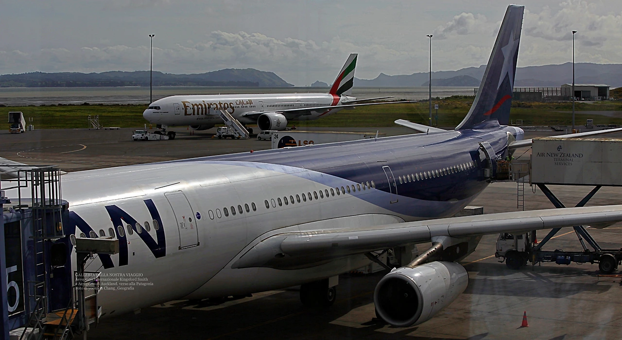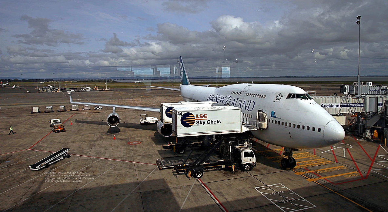 e Aeroporto di Auckland. verso alla Patagonia