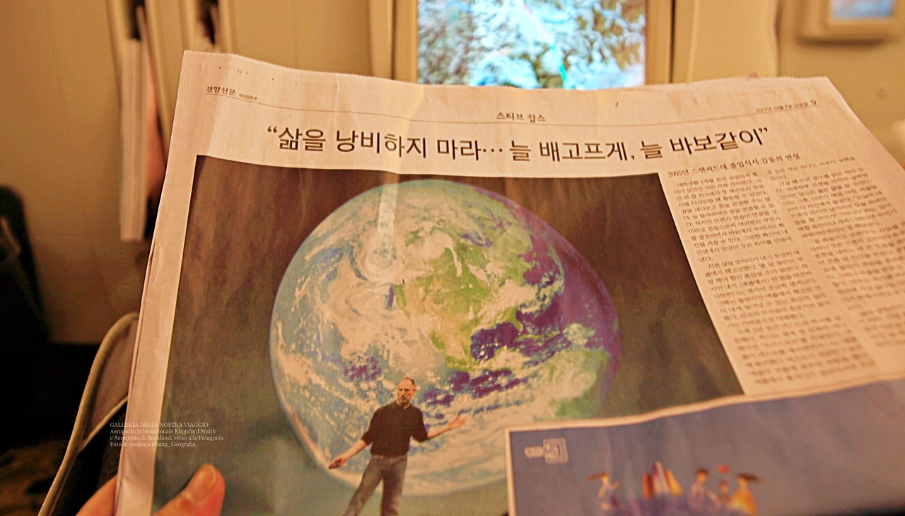 그래서 거머쥔 행운을 마다하고 조용히 지내며 당일자 신문을 펼쳐보았다. 나는 그곳에서 전혀 뜻밖의 한 기사를 만나게 됐다. 신문에는 대문짝만 하게 스티브 잡스( Steve Jobs)의 얼굴이 실려있었다. 우리가 파타고니아로 여행을 떠나기 이틀 전 스티브 잡스는 세상을 떠난 것이다. 참 묘한 타이밍이었다.