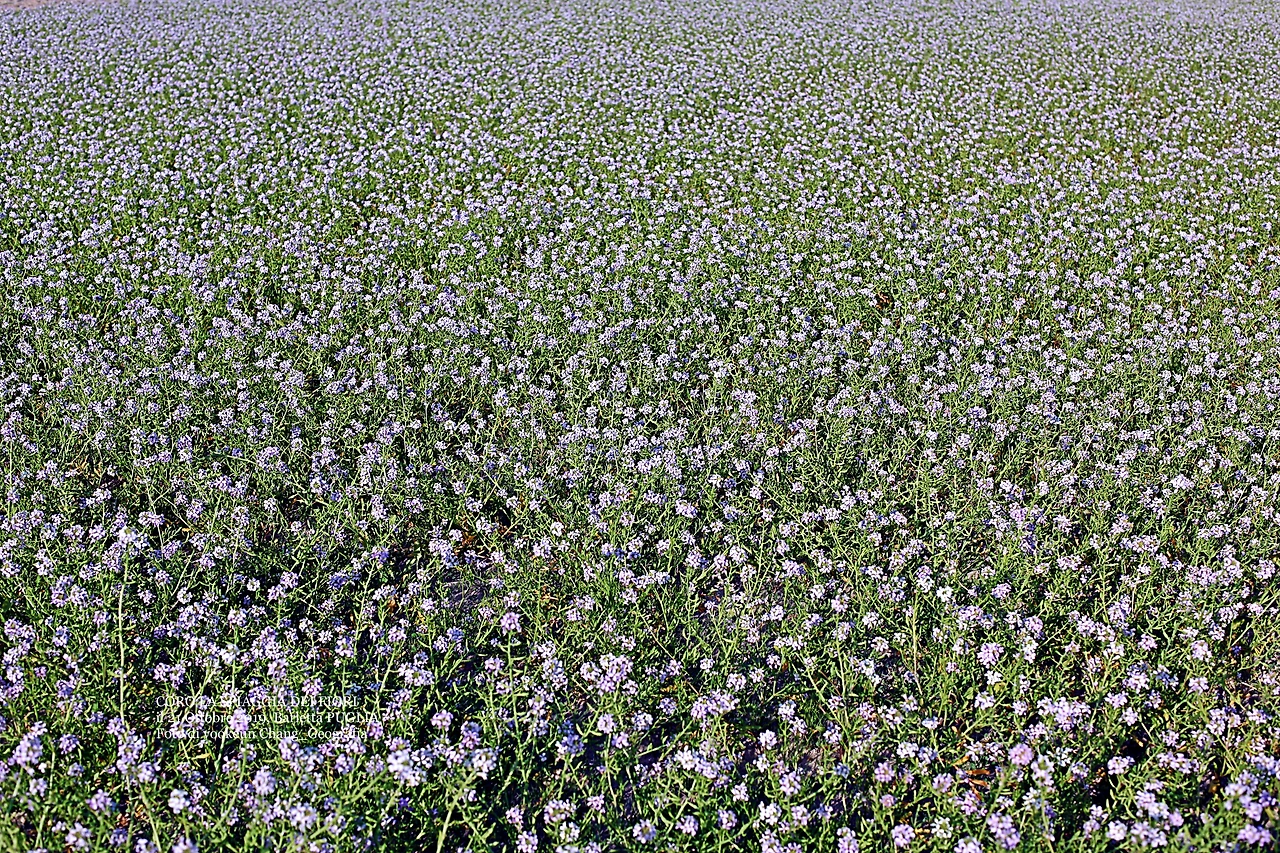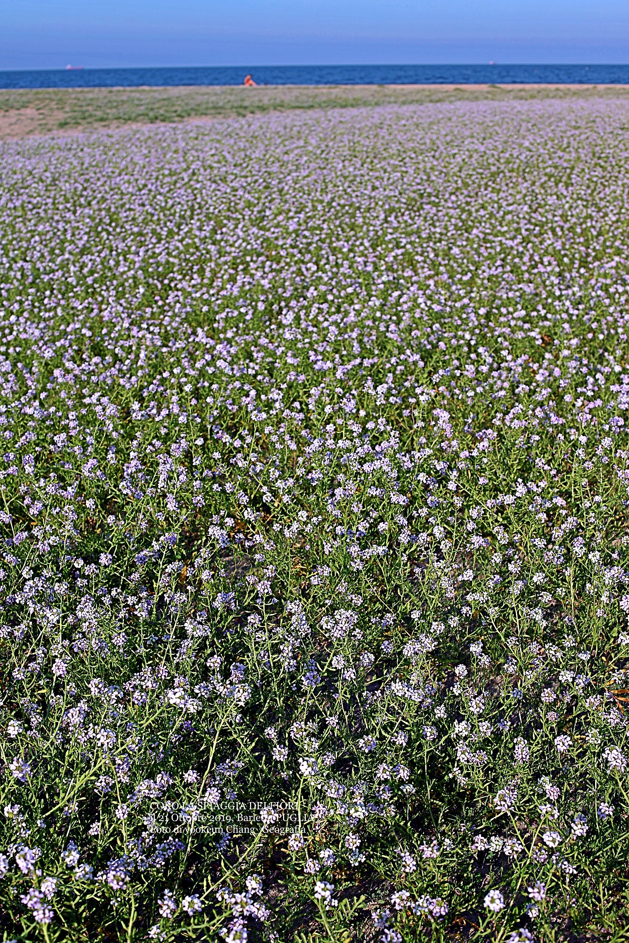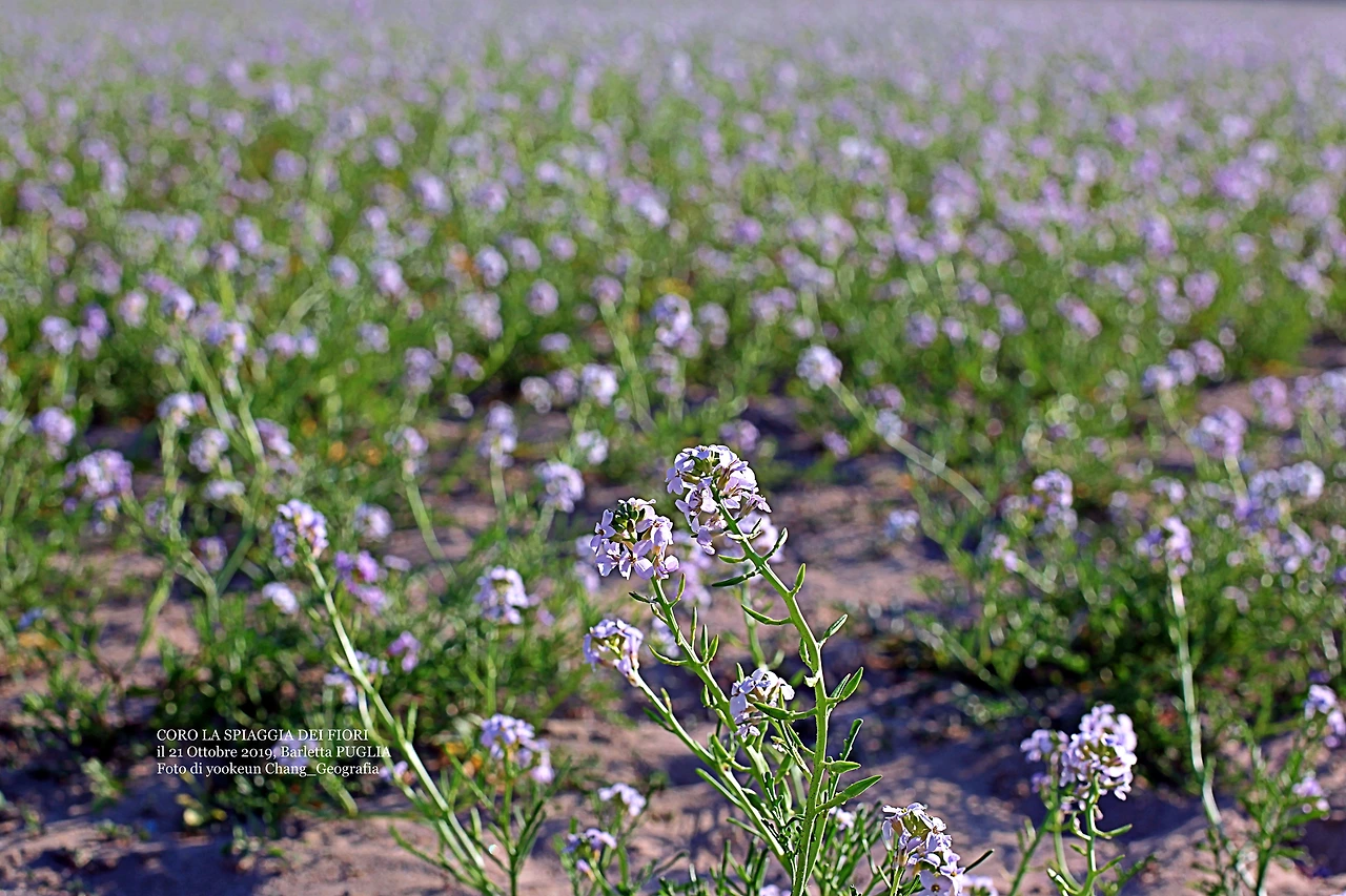그런데 지난 8월말경 바캉스 시즌이 끝나고부터 재밌는 현상이 발견되기 시작했다. 바닷가 모래밭에 초록빛 기운이 감돌더니 9월이 접어들면서 모래밭은 축구장처럼 파란 싹들로 뒤덮였다. 그리고 10월로 접어들 때 장관이 빚어졌다. 풀꽃들이 연보라빛 꽃을 피우며 대합창을 시작한 것이다.