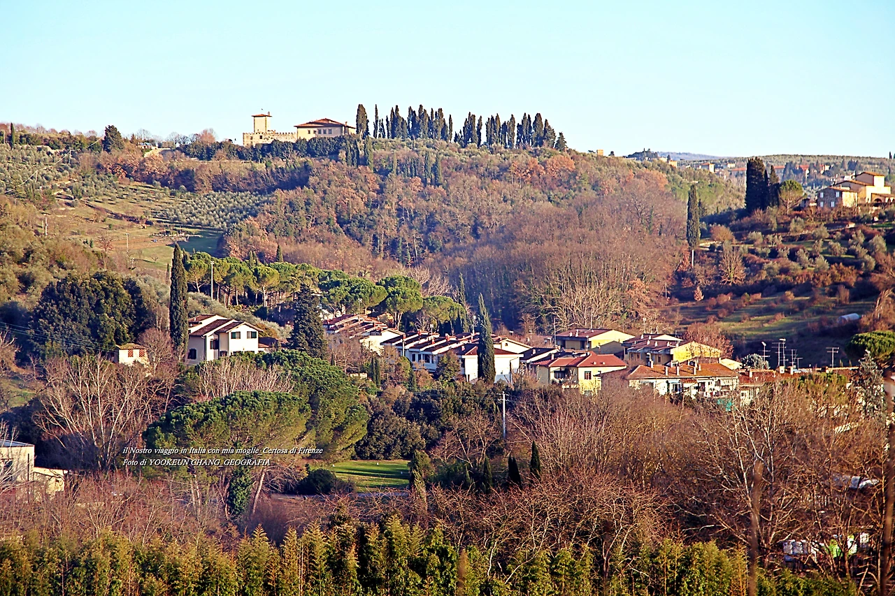 우리는 퓌렌쩨 수도원과 토스카나 주의 주도 퓌렌쩨의 서쪽에 위치한 갈루쪼(Galluzzo_수탉의 일종을 도시의 이름으로 명명: 아래 첨부의 문장(Galluzzo-Stemma)) 자치단체가 바라보이는 절벽 끄트머리에 도착했다. 뾰족한 사이프러스 나무들이 언덕 위에 빼곡히 서 있는 작은 도시.. 한 때 퓌렌쩨가 이 도시를 접수하려는 시도가 있었다.