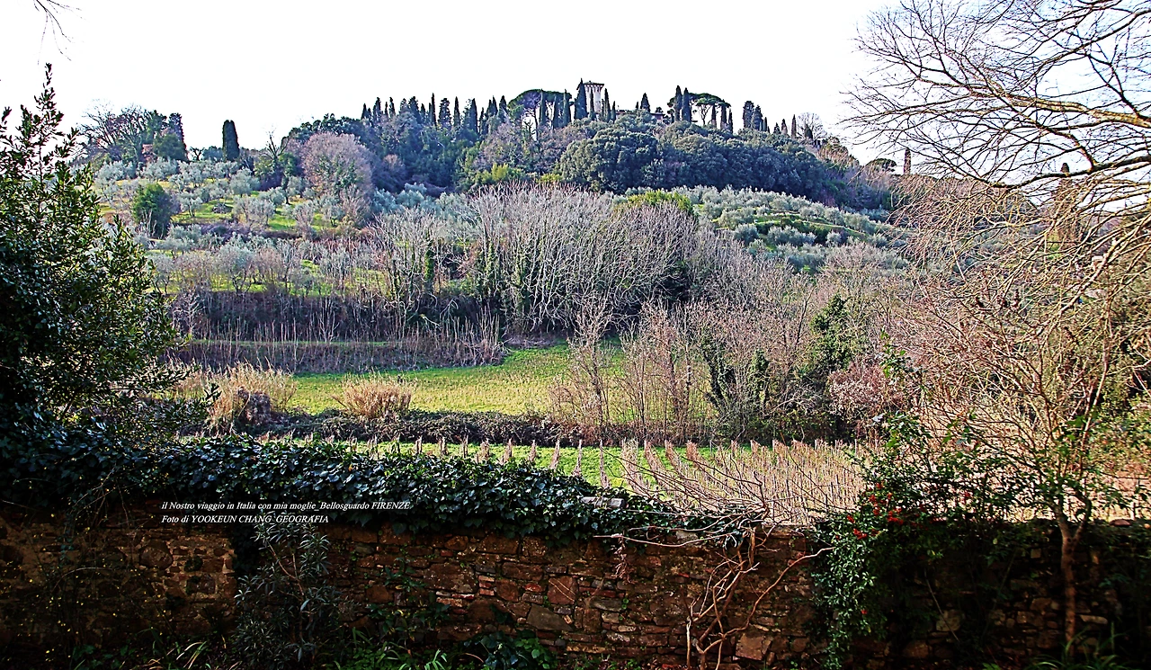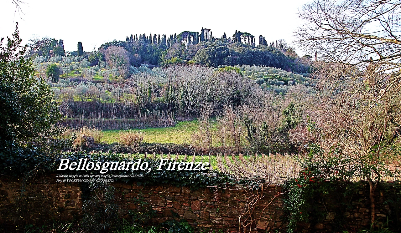 아르노 강가 언덕 위에 위치한 미켈란젤로의 광장(Piazzale Michelangelo)이 도시를 가까이서 조망할 수 있다면, 이곳은 거리가 조금 떨어진 언덕 위에서 퓌렌쩨가 조망되는 곳이다. 우리가 이 도시에 살기 시작하면서 발도장을 찍은 곳 중에 두 번째로 먼 지역의 언덕 위에 벨로스구아르도가 있었다.