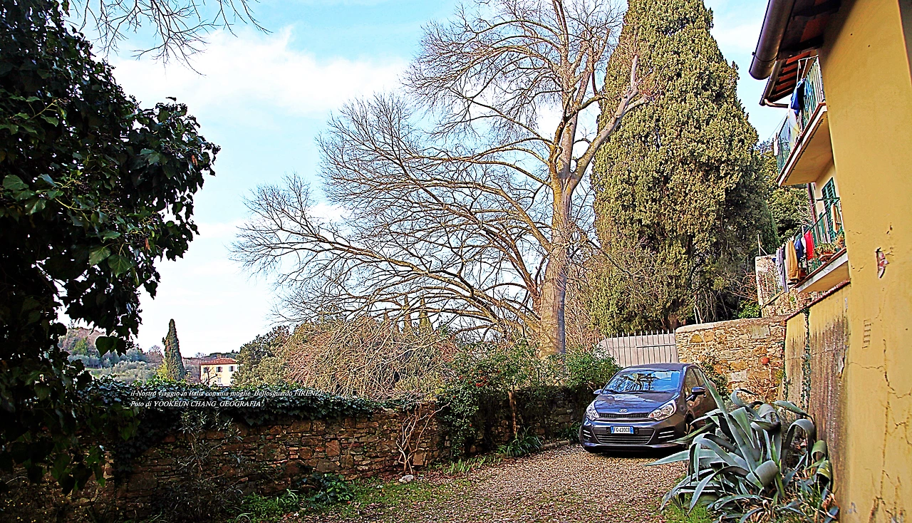 동네 어귀에서 바라보이는 벨로스구아르도에는 오래된 빌라들이 지어져 있고 그들의 기원은 르네상스 때부터라고 알려져 있다. 아름다운 장소에 서면 영감이 마구 뿜어져 나오기 때문이랄까.. 시간을 거꾸로 돌려보면 미켈란젤로가 어느 날 내가 서 있는 장소까지 산책 삼아 바람을 쇠러나왔을지도 모를 일이다. 이곳에는 수세기 동안 퓌렌째에 이름을 올린 유명인사들의 명판이 있다고 전한다. 예를 들면, 주세뻬 가리발디, 우고 포스꼴로, 알베르또 마리오, 헨리 제임스, 플로렌스 나이팅게일 등이다.