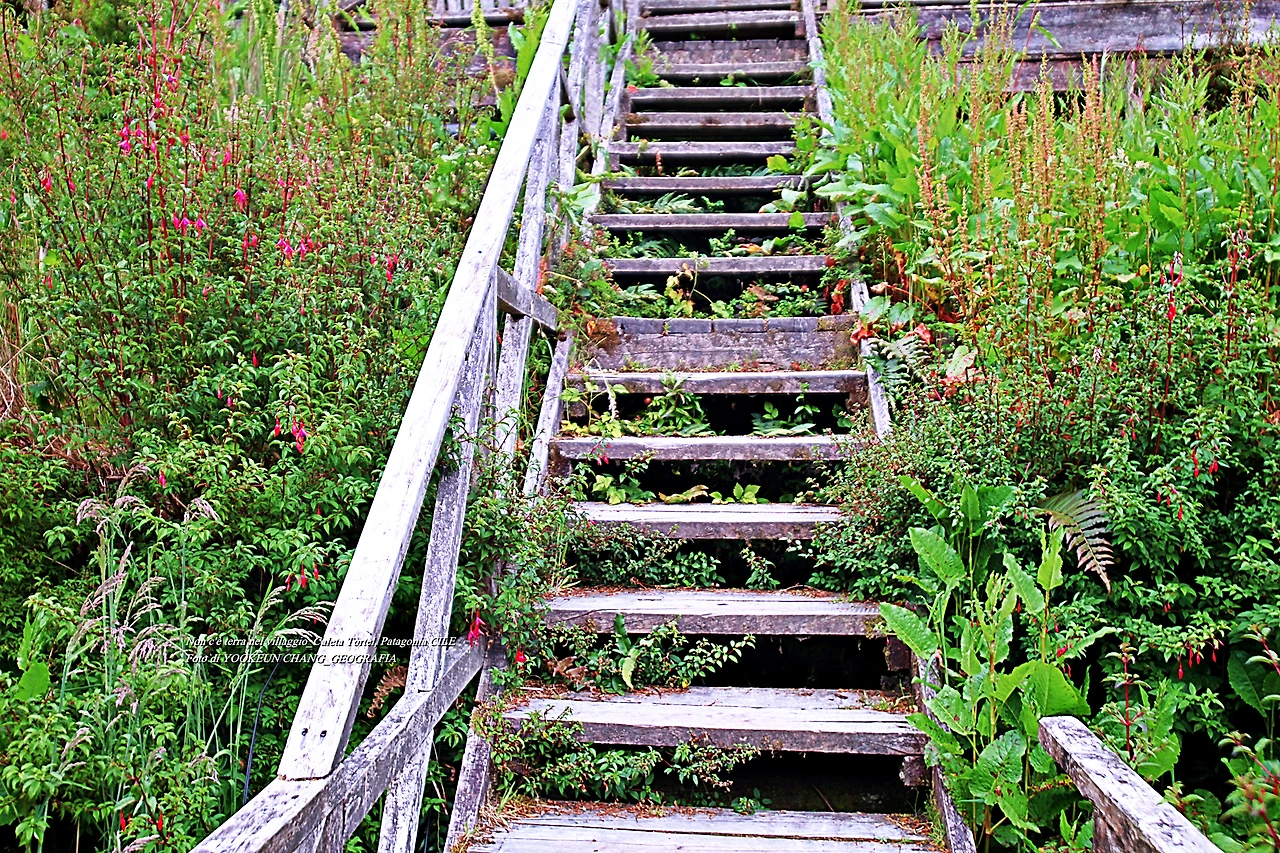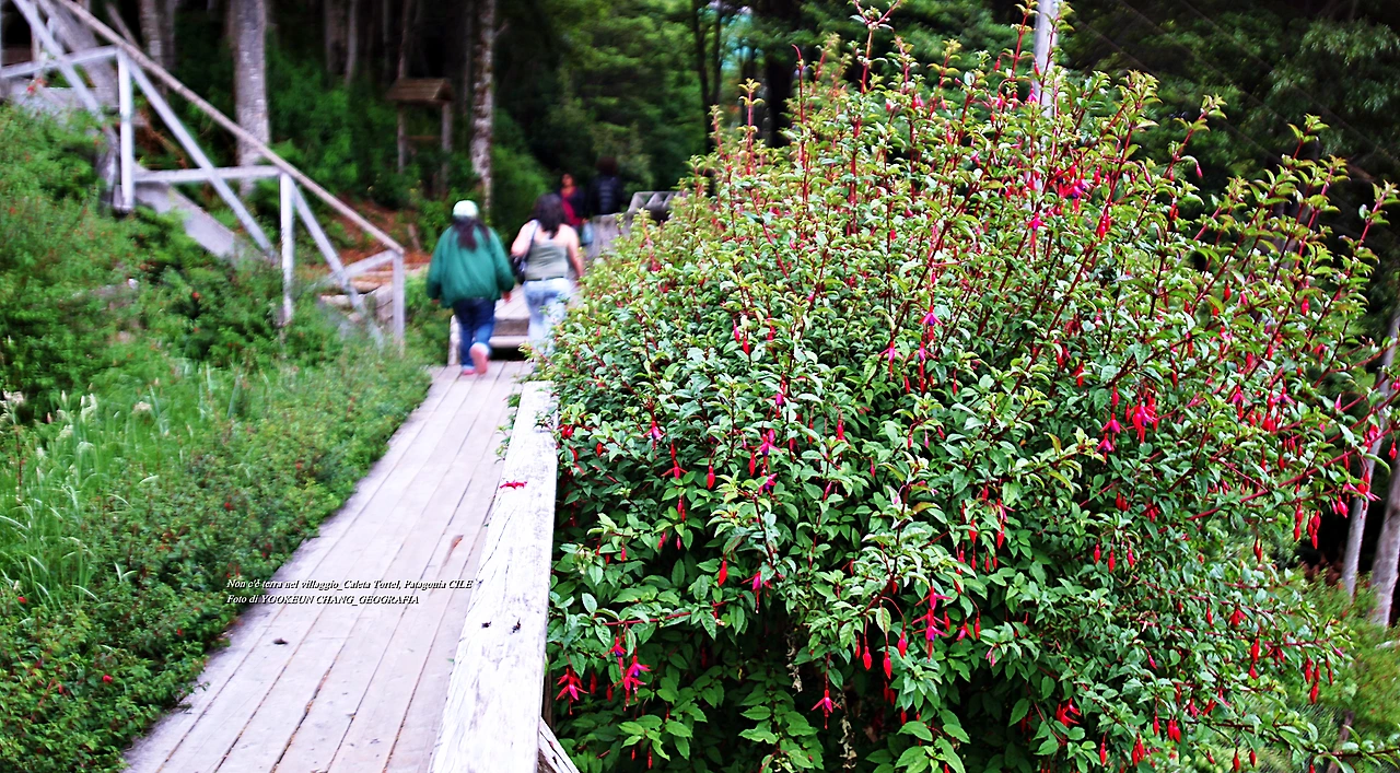 우리가 나무로 만든 길 위에 발을 딛고 서 있는 이곳이 남극에 가까운 칠레의 파타고니아 지역이자, 이곳에 살고 있는 사람들은 피오르에 기대어(?) 사는 사람들이다. 숙소로 돌아가는 길.. 우리는 이곳에서 파타고니아의 꽃 푸쉬아(Fucsia)를 만나게 됐다.