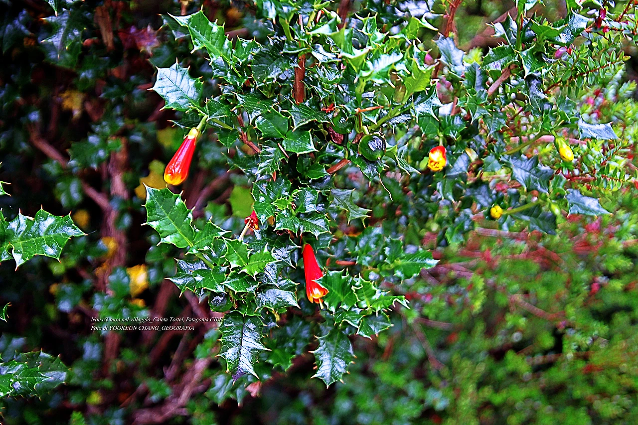 우리 행성의 청정지역 파타고니아는 식물의 천국이다. 지금 보고 계신 호랑가시나무(학명: Aquifoliaceae, Ilex)는 누군가 잎을 깨끗이 닦아둔 듯 뺀질뺀질 윤기가 좔좔 흐른다. 우리나라에서는 특정 지역에서 볼 수 있거니 재배된 것들이 다수로 보이지만, 이곳에서는 자연스럽게 자연과 더불어 살아가고 있었다.