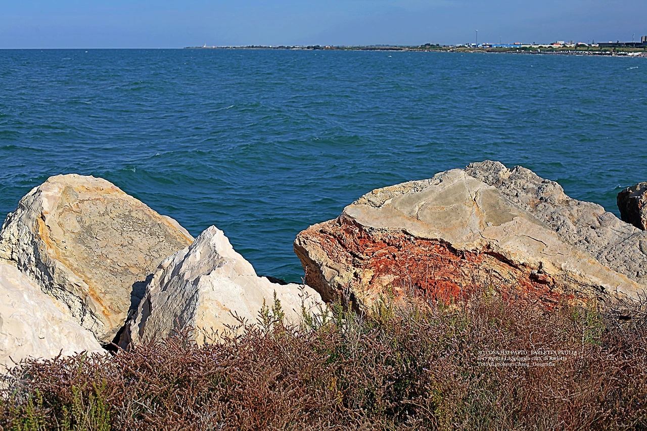 #7_방파제를 쌓은 대리석과 그 틈바구니에 피어난 풀꽃들.. 해변으로부터 멀어지자 바다는 점점 더 깊어지고 파도가 일렁이는 대해로 변한다.
