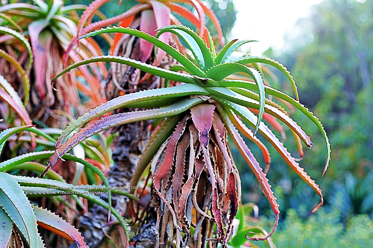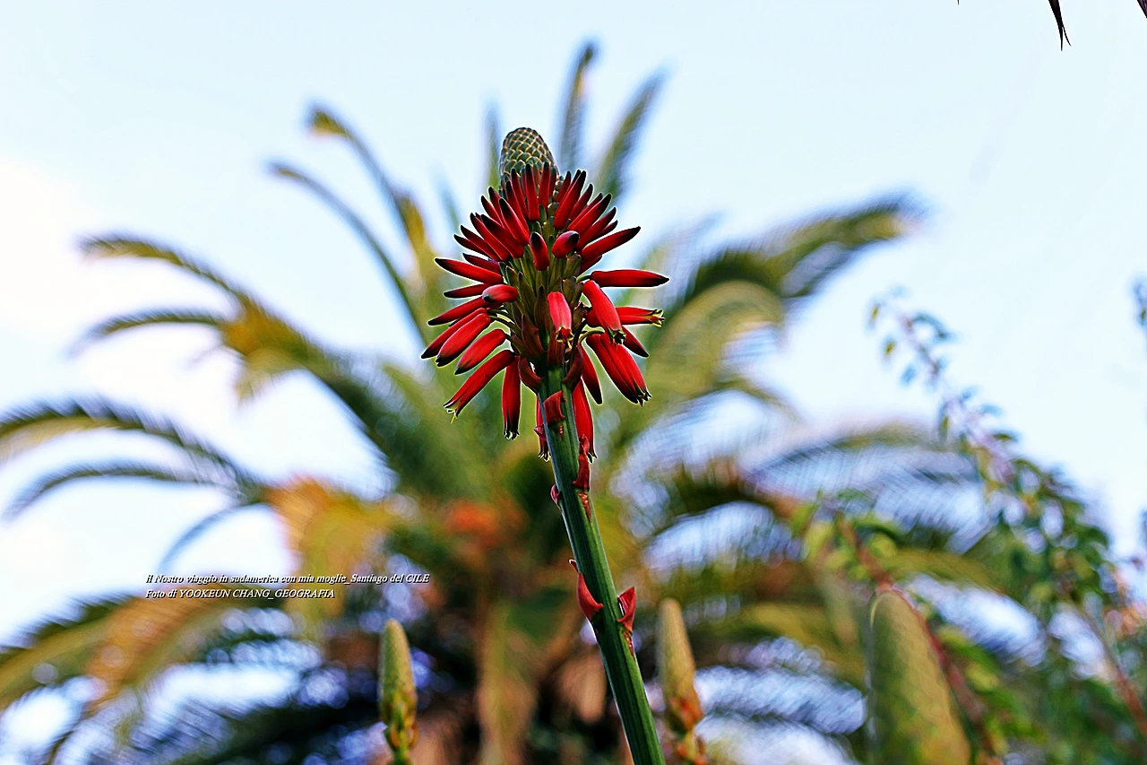주말 저녁.. 컴에 로그인하고 열어본 사진첩 속에 낯익은 풍경이 나를 빤히 바라보고 있다. 하니와 함께 파타고니아 여행을 끝마치고 칠레의 수도 산티아고에 머물 때 거의 매일 오르락내리락했던 쎄로 산 끄리스토발 공원 꼭대기 정원에서 만난 아름다운 풍경.. 그곳에 우리에게 익숙한 식물 알로에 고목이 자라고 있었다.