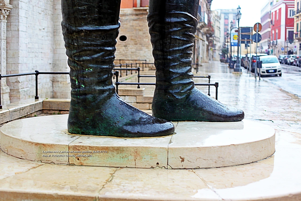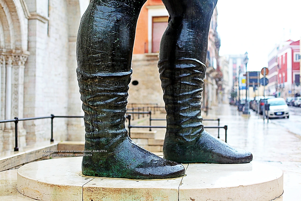 이곳 바를레타 사람들의 가슴에는 당신의 일상을 지켜주는 수호신이 존재한다. 당신의 발을 만지는 것만으로도 행운이 깃든다고 믿는 사람들.. 교회에 안치해 둔 '성묘의 보물' 보다 시민들의 안녕을 위해 십자가를 들고 있는 믿음직한 수호신이자 상징이 비를 맞고 서 있었다. 이 포스트를 보시는 분들은 마우스를 에라끌리오의 발 등에 올려놓으시고 행운을 빌어보시기 바란다.