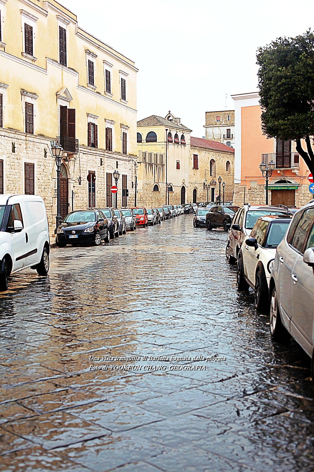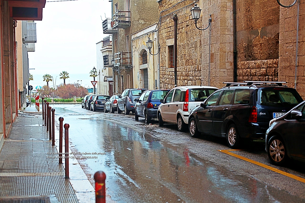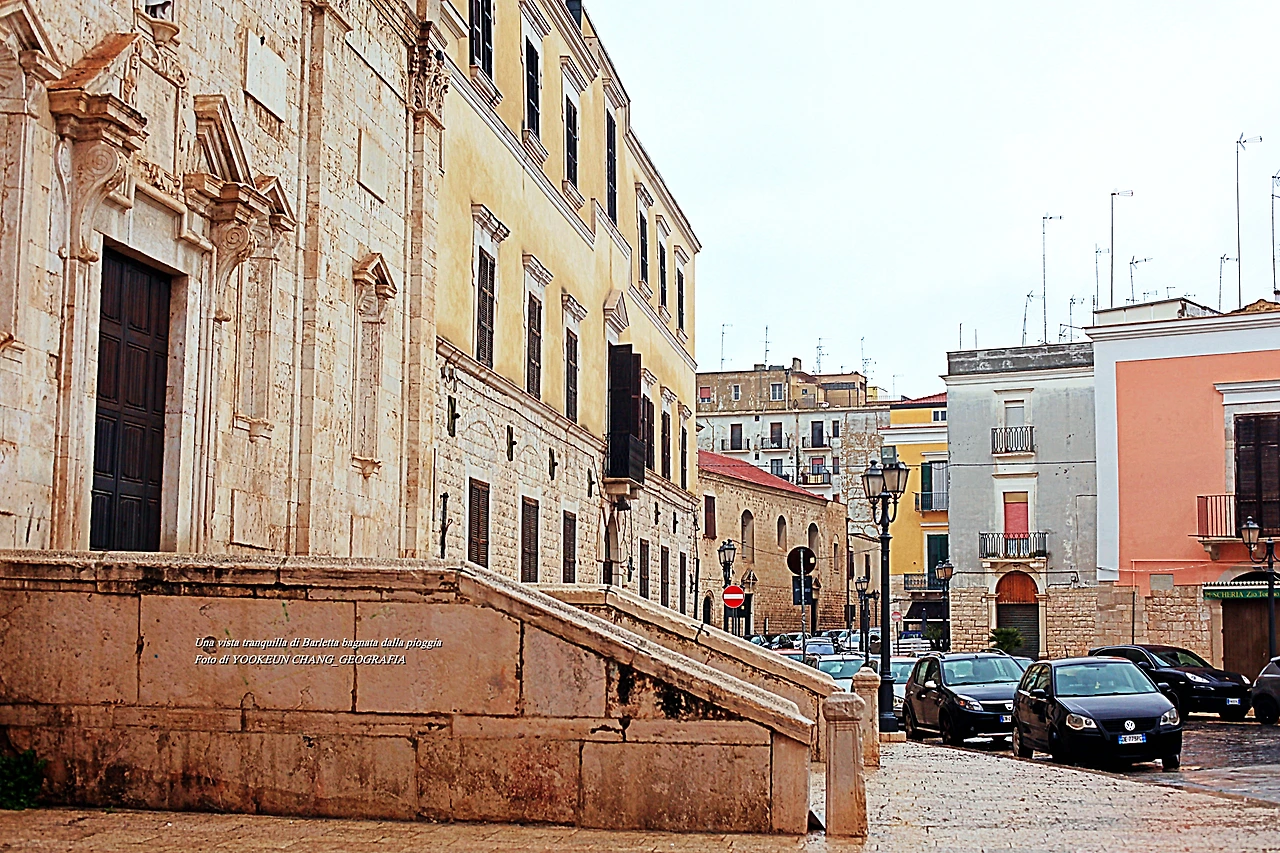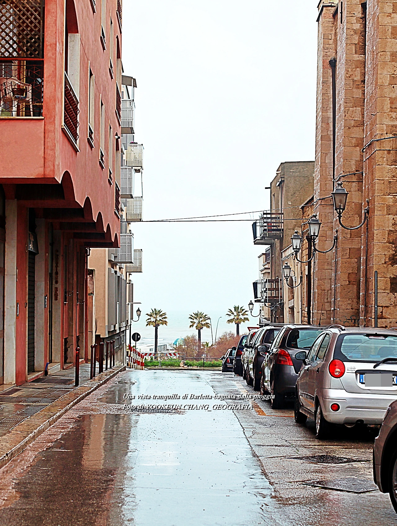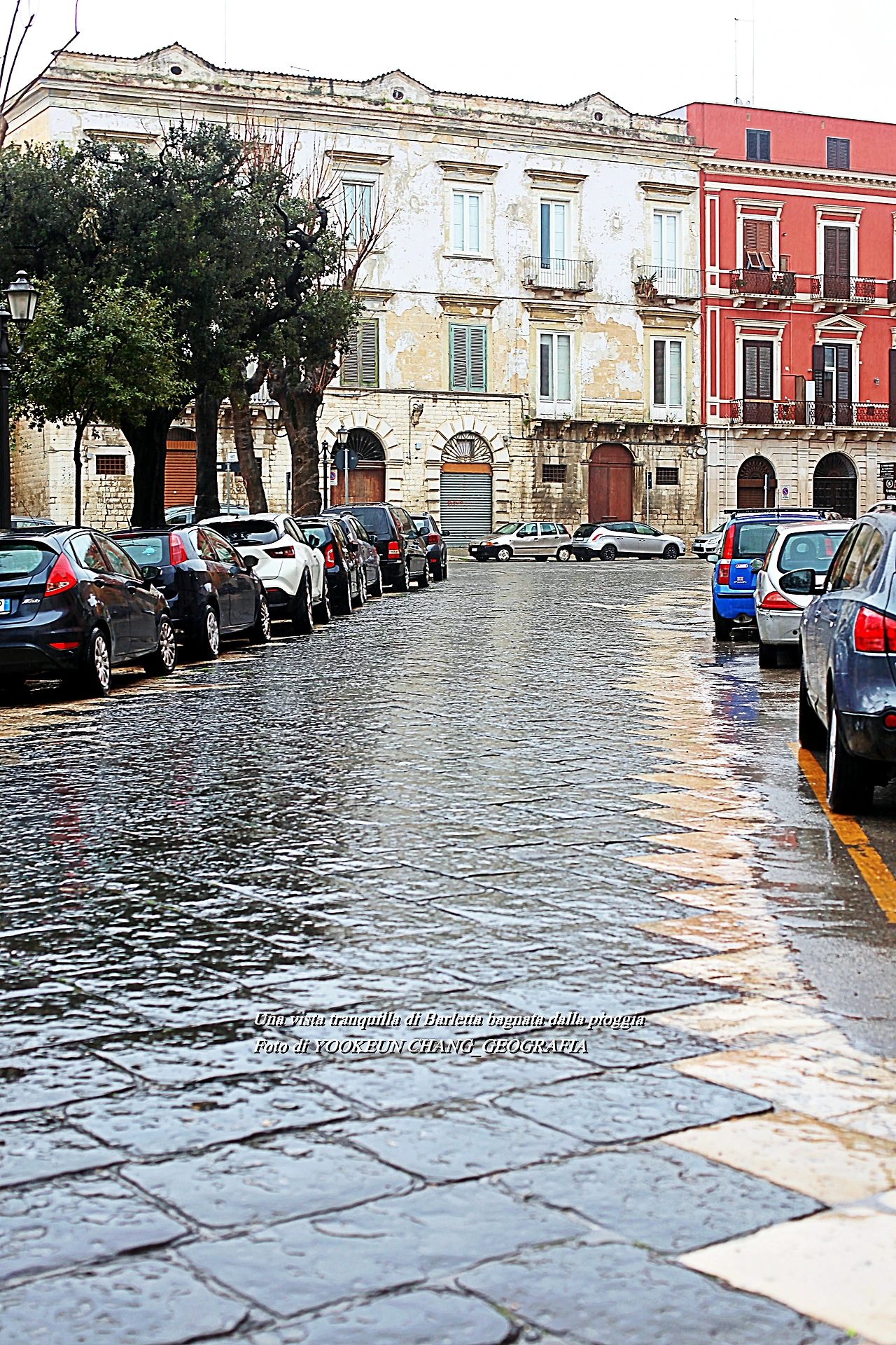 Una vista tranquilla di Barletta bagnata dalla pioggia