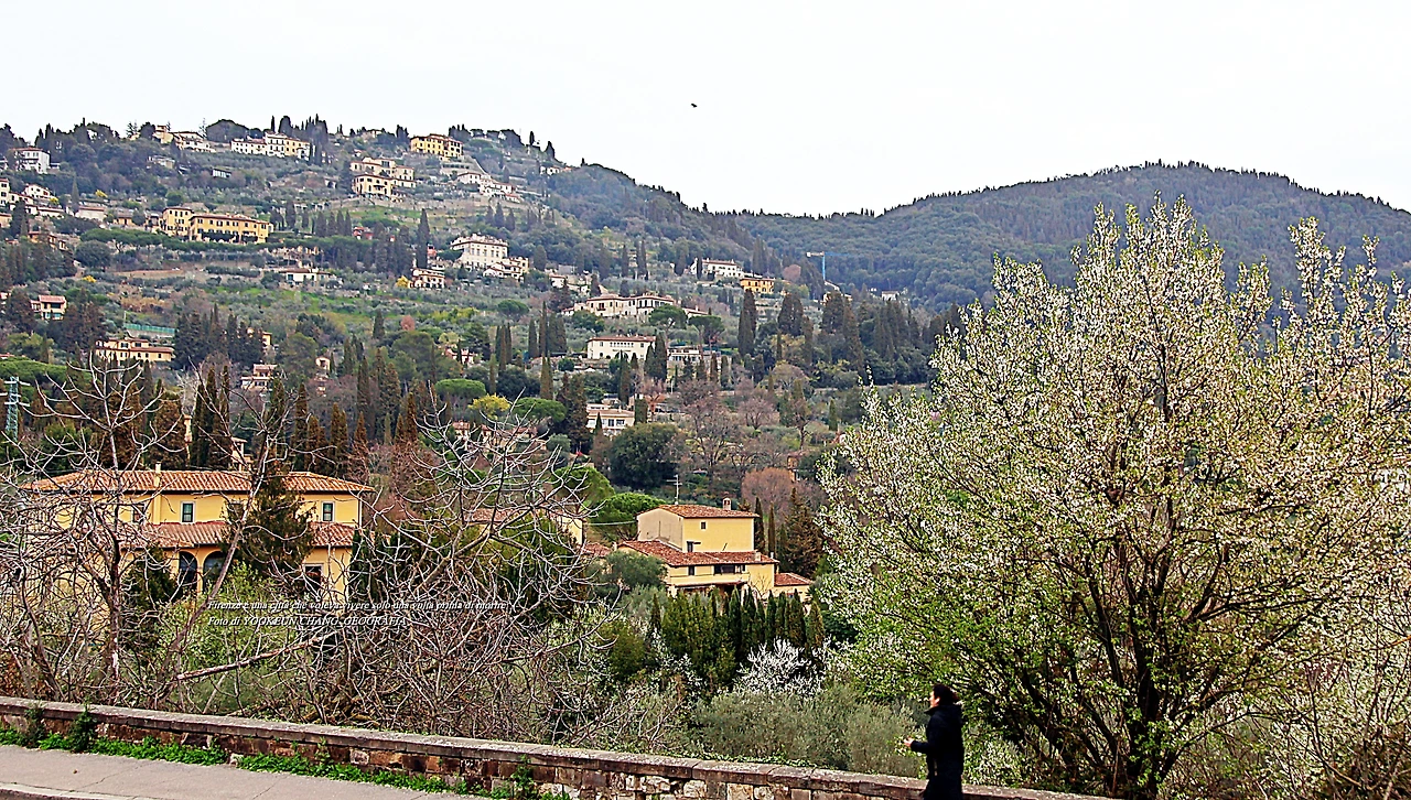 퓌렌쩨 시내 중심에서 도시를 가로질러 이곳 퓌에솔레 언덕 아래까지 천천히 걸어오면, 양쪽이 담벼락에 가로막혀 약간은 답답한 느낌을 준다. 그러나 그것도 잠시 찻길에 들어서면 이때부터 막힌 숨통이 확 트이는 듯하다. 이때부터 마법에 걸린 사람들처럼 제정신이 아니랄까..