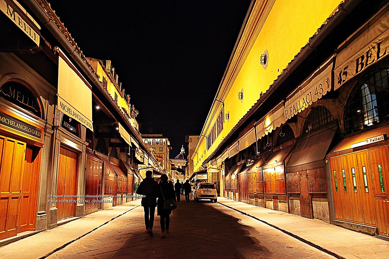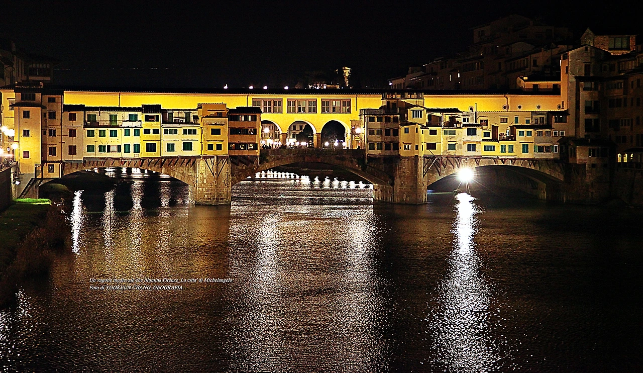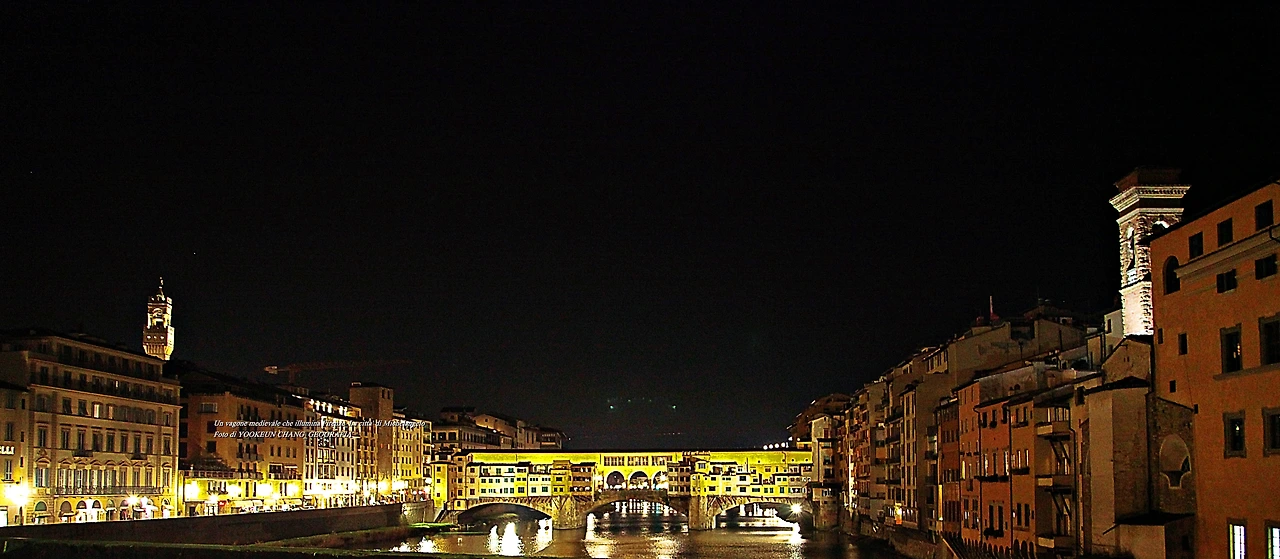 뽄떼 산타 뜨리니따(Ponte Santa Trinita) 다리 위에서 바라본 뽄떼 베끼오(Ponte Vecchio)의 야경