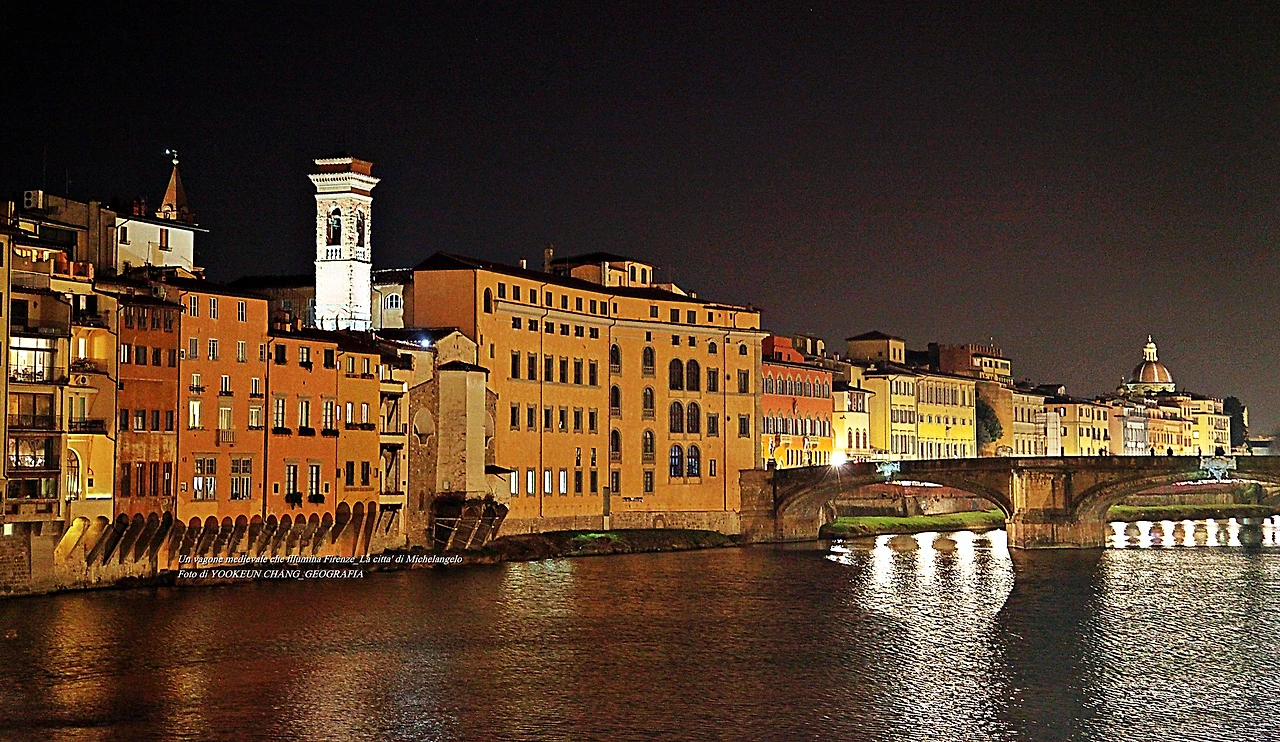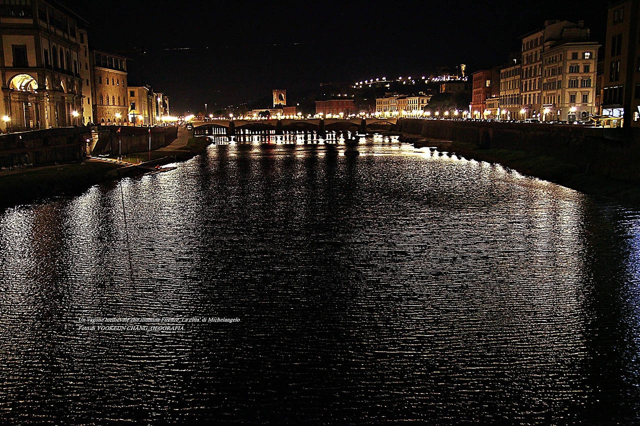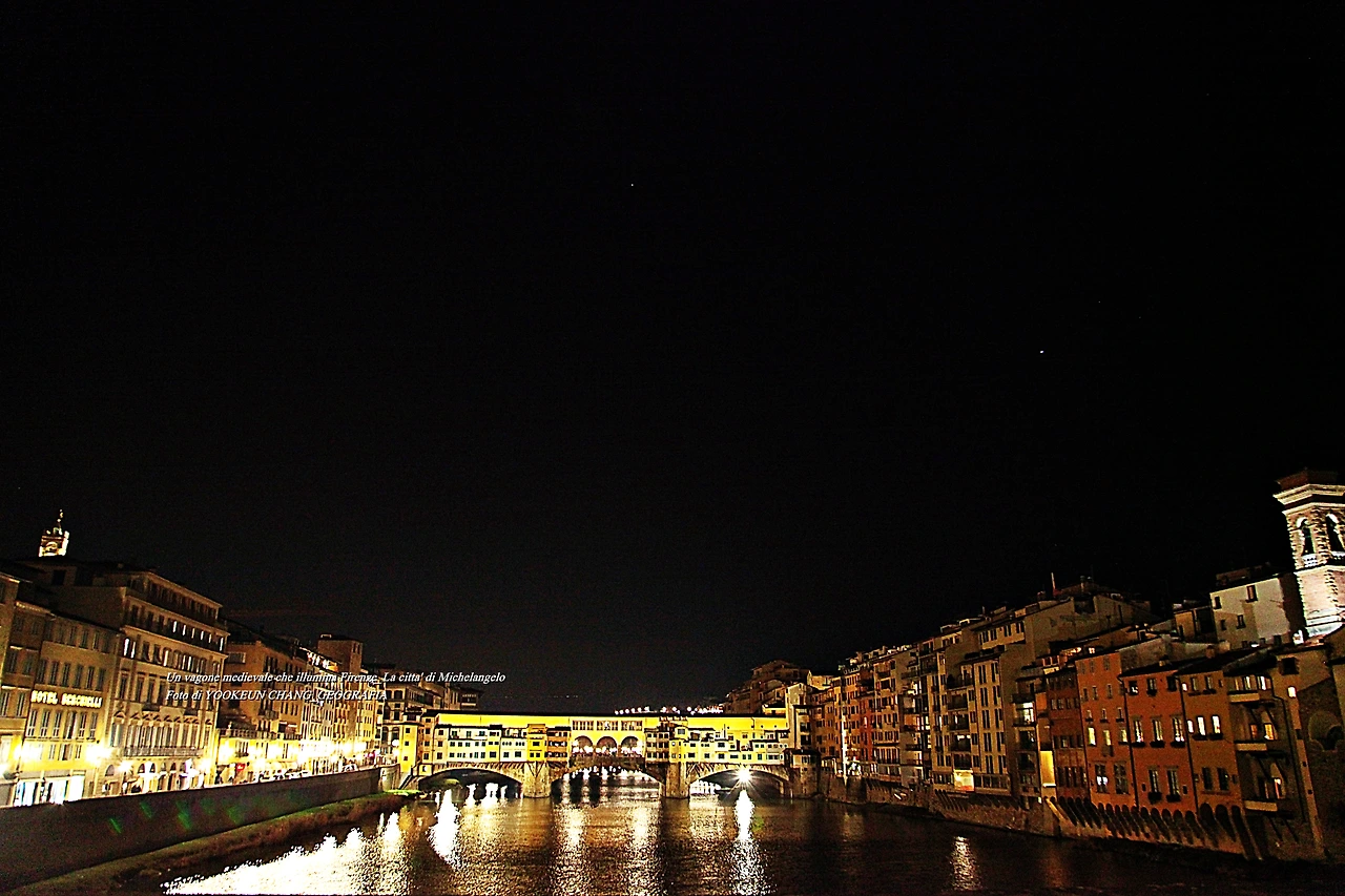 이탈리아 요리에 입문한 어느 날 자정이 넘은 야심한 시각에 숙소에서 멀지 않은 퓌렌쩨의 명소 베끼오 다리(Il Ponte Veecchio) 위에서 주변을 둘러보았다. 베끼오 다리는 아르노 강(Fiume Arno) 상류와 하류를 조망할 수 있도록 다리 가운데가 양쪽으로 뻥 뚫려있다. 그래서 이곳을 찾는 세계인들은 양쪽을 번갈아 보며 기념촬영을 하곤 한다. 아르노 강 동쪽에는 뽀르따 산 니꼴라(Porta San Niccolò) 탑이 뽄떼 알레 그라찌에(Ponte alle Grazie) 다리 너머로 우뚝 솟아나 있다.