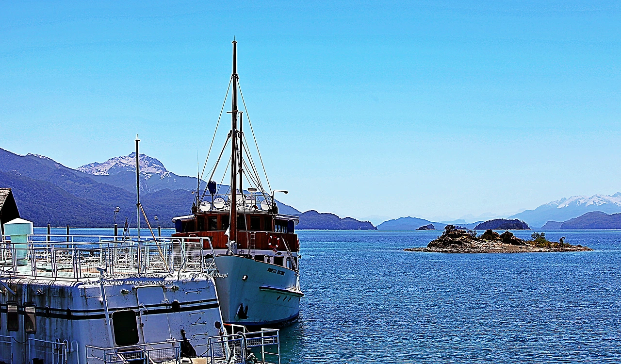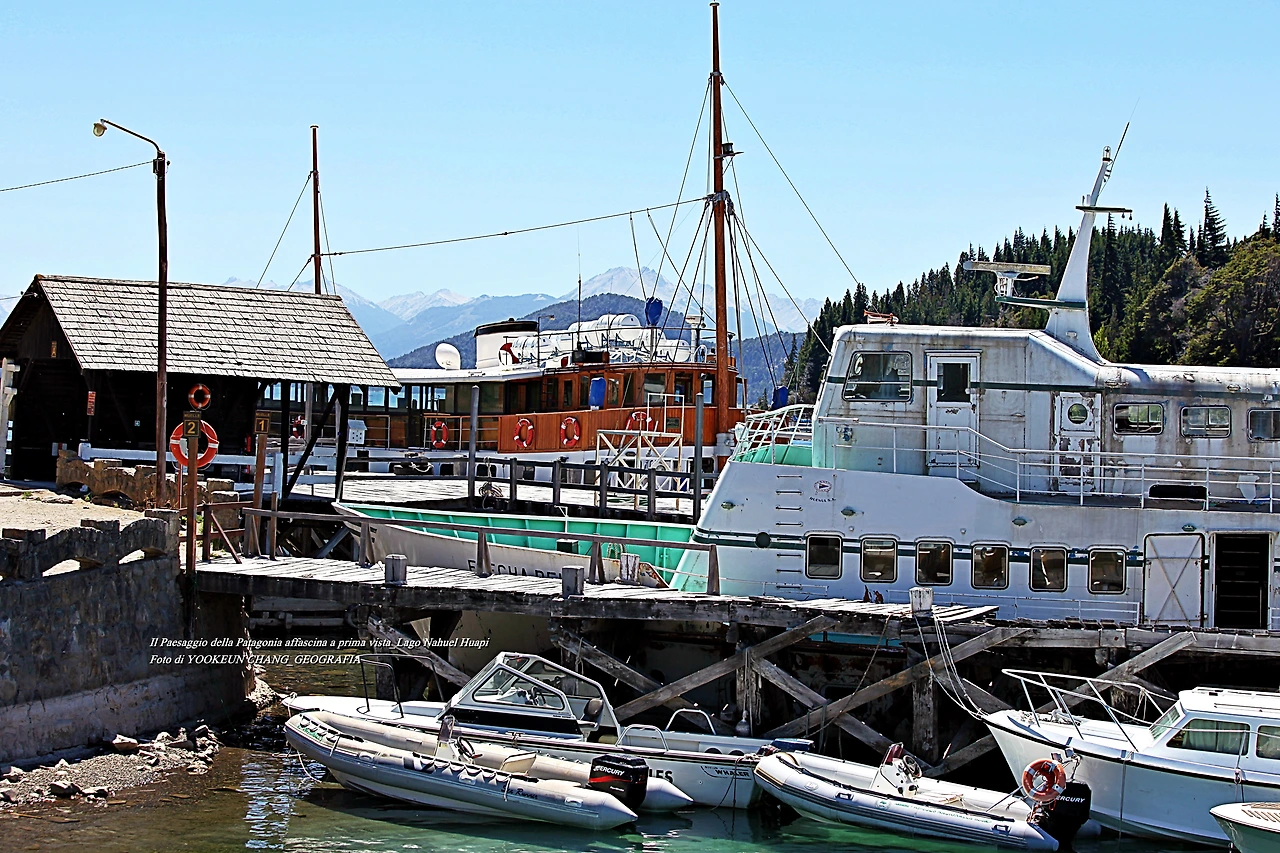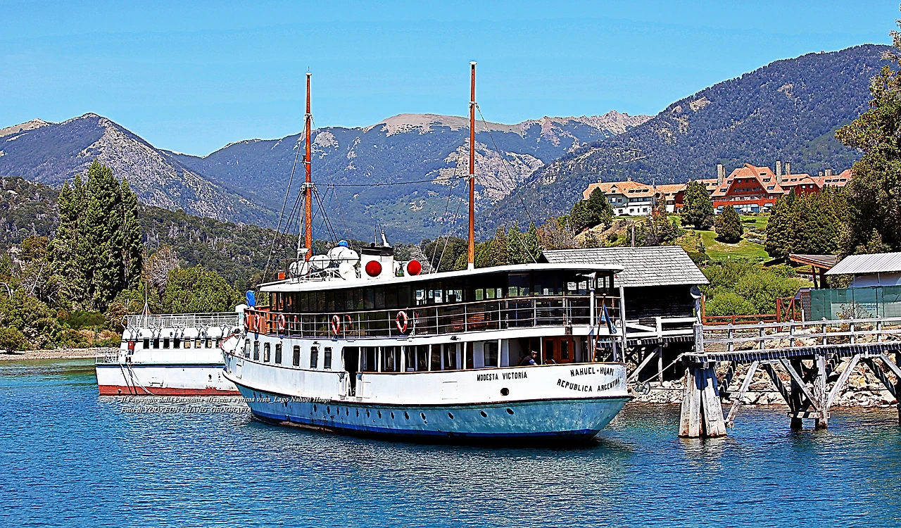 나우엘 우아피 호수의 선착장으로 가는 길에 다시 한번 더 눈여겨보고 있는 하나의 풍경이 유람선 뒤에 숨어(?) 있다. 갈색의 마스터와 선교에 라이프 링이 여럿 걸려있는 유람선 한 척.. 저곳에 우리의 추억이 담겨 있는 것이다. 유람선의 이름은 모데스타 빅토리아(MODESTA VICTORIA) 호이다.